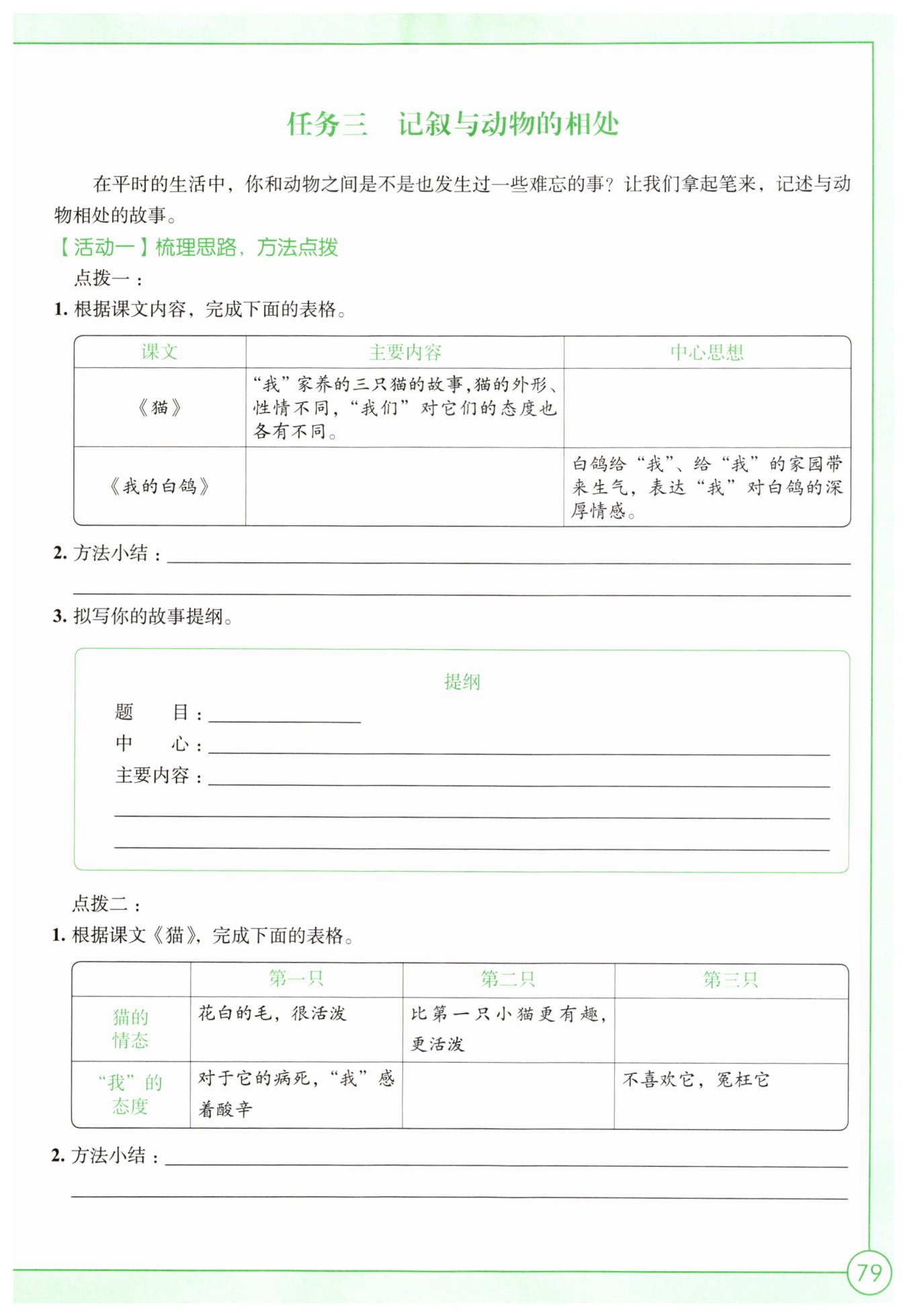通過(guò)梳理文章中動(dòng)物的故事(如外形、習(xí)性、與人物的互動(dòng)等),分析人物對(duì)動(dòng)物的情感