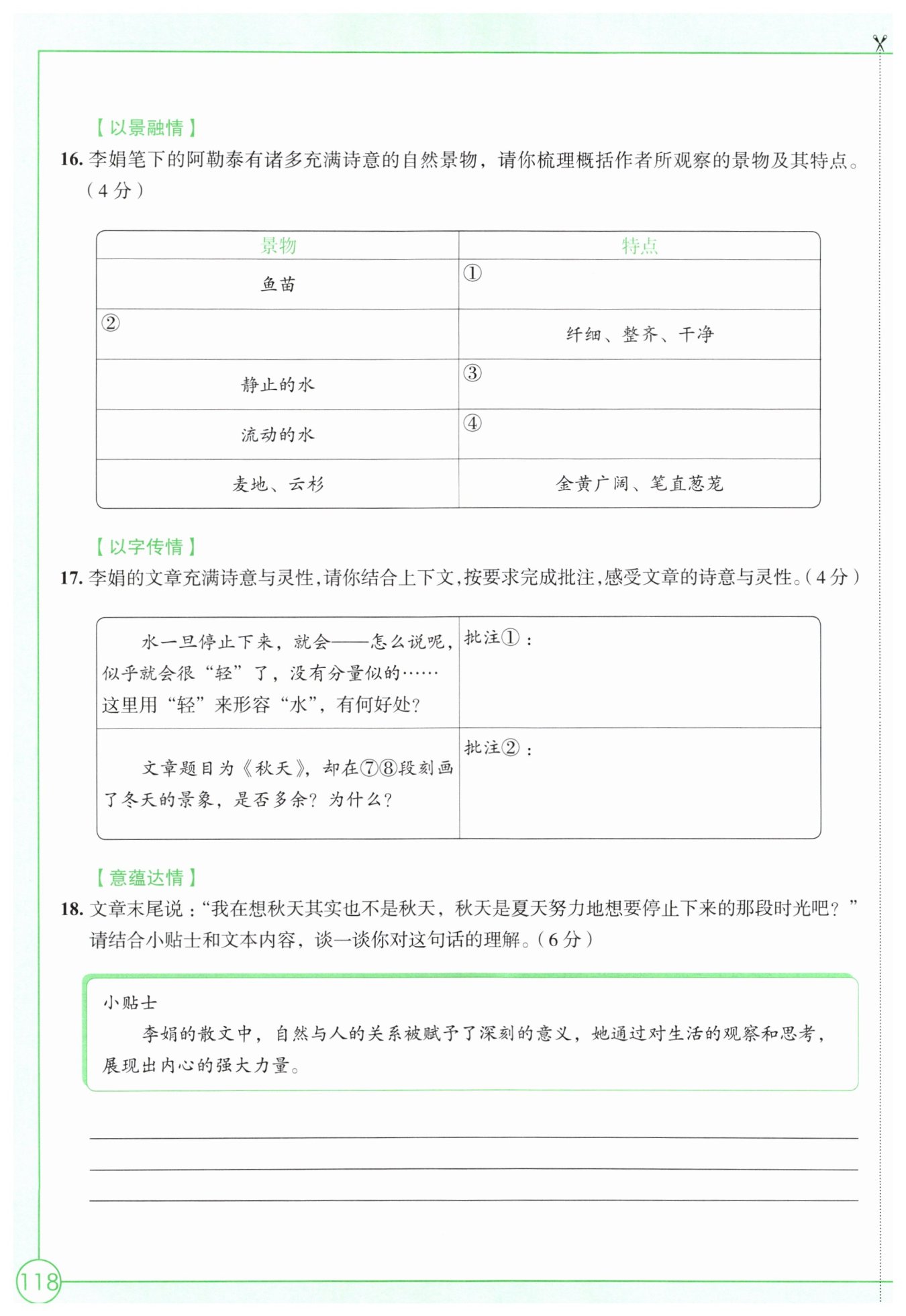 ①秋天在作者眼里并非一個(gè)獨(dú)立的季節(jié),而是夏天試圖停留、不愿離去的時(shí)間。②李娟通過對(duì)阿勒泰