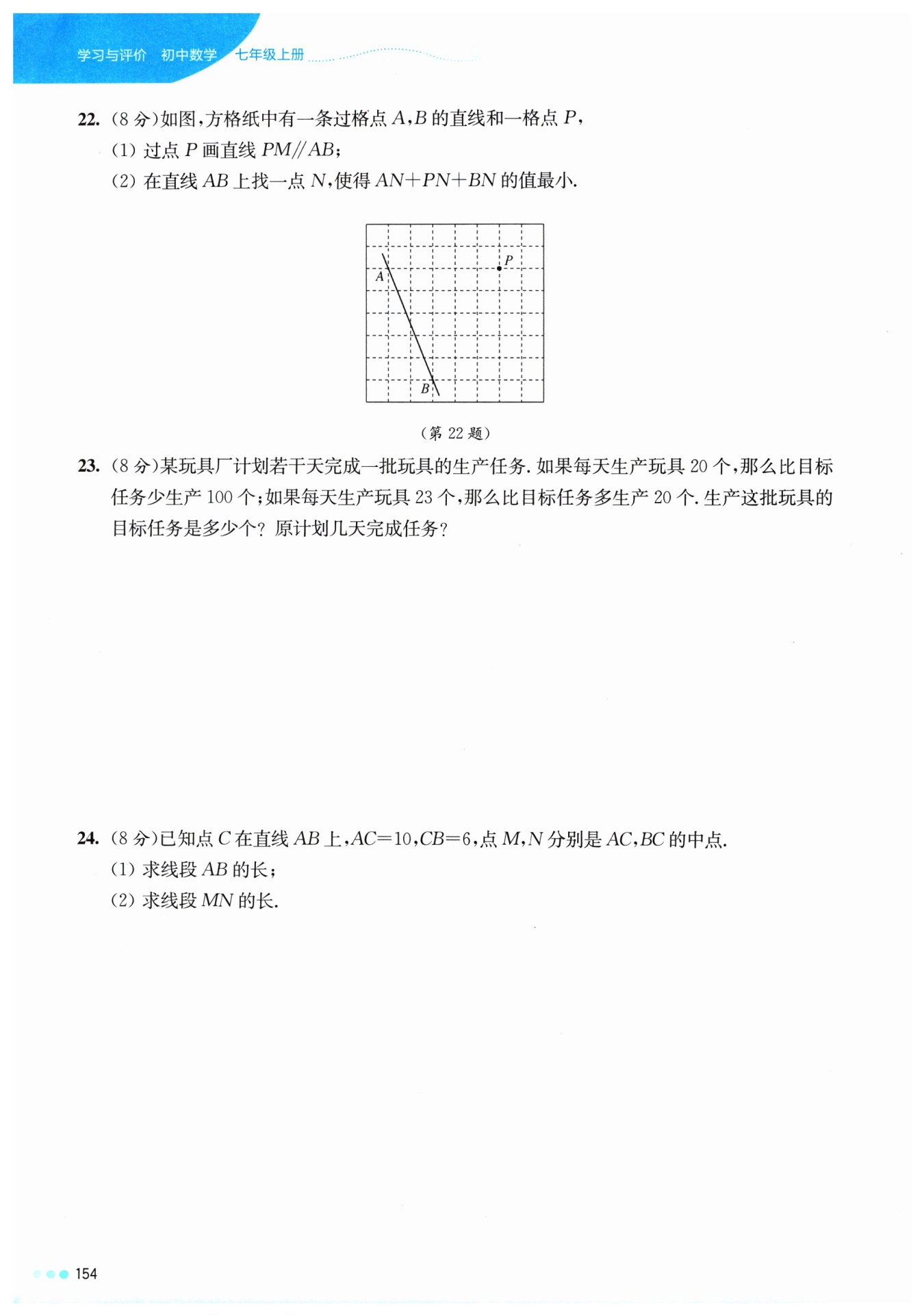 ?由線段的和差,得$MN=MC+CN=5\ \mathrm {cm}+3\ \mathrm {cm}=8\ \mathrm {cm};$?