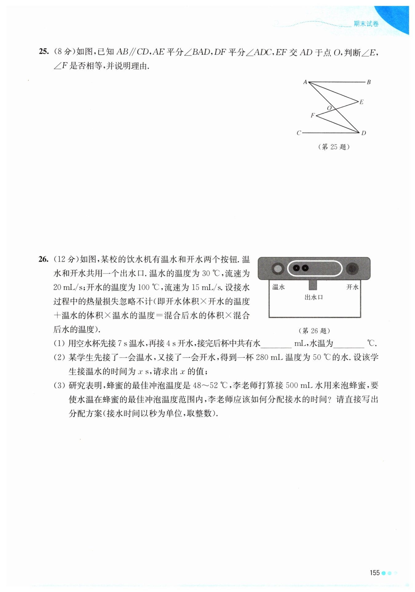 (2) 設(shè)接溫水$x\,s$,開水$y\,s$。