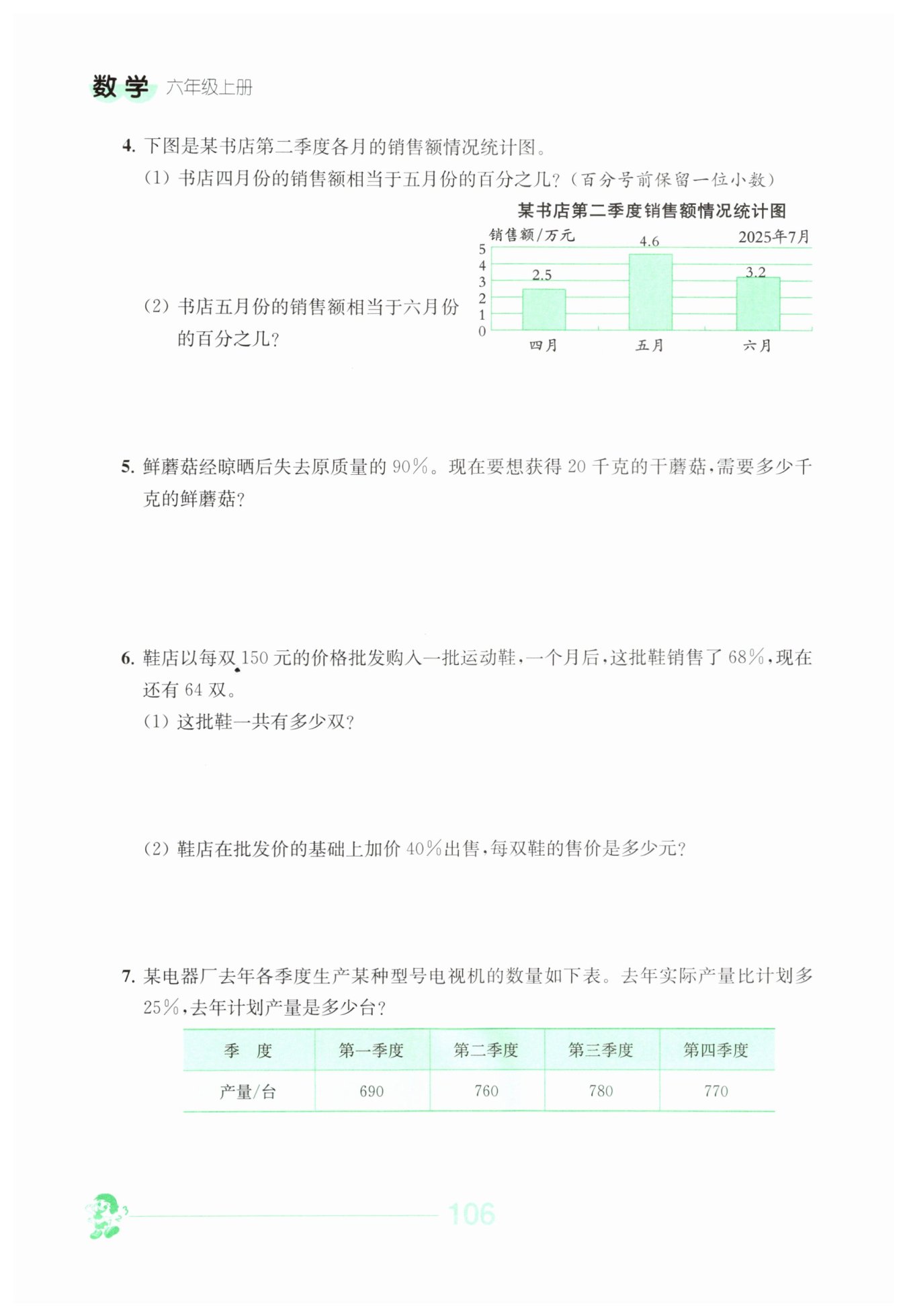 $( 690+ 760+780+770)÷( 1+25\%) =2400(臺(tái))$