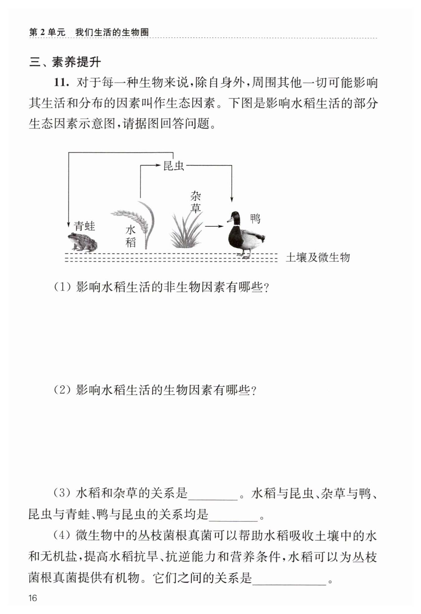生物因素主要有昆蟲、雜草、鴨、青蛙、田里的其他水稻等。