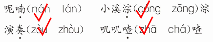 呢喃(nán√ lán) 小溪淙(cóng√ zōng)淙