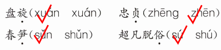 盤旋(xuán√ xuán) 忠貞(zhēng zhēn√)