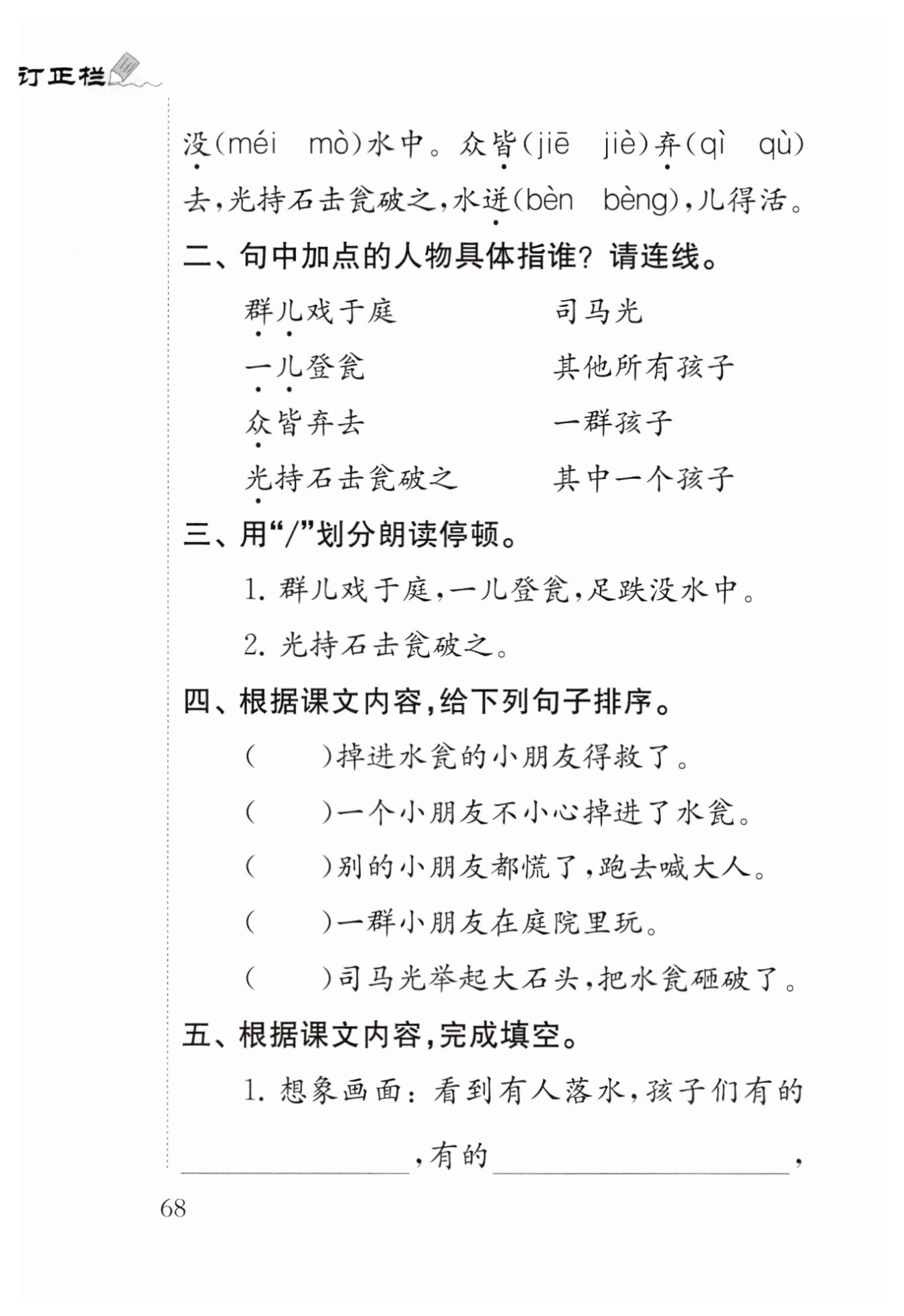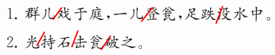 1. 群兒/戲于庭,一兒/登甕,足跌/沒(méi)水中。