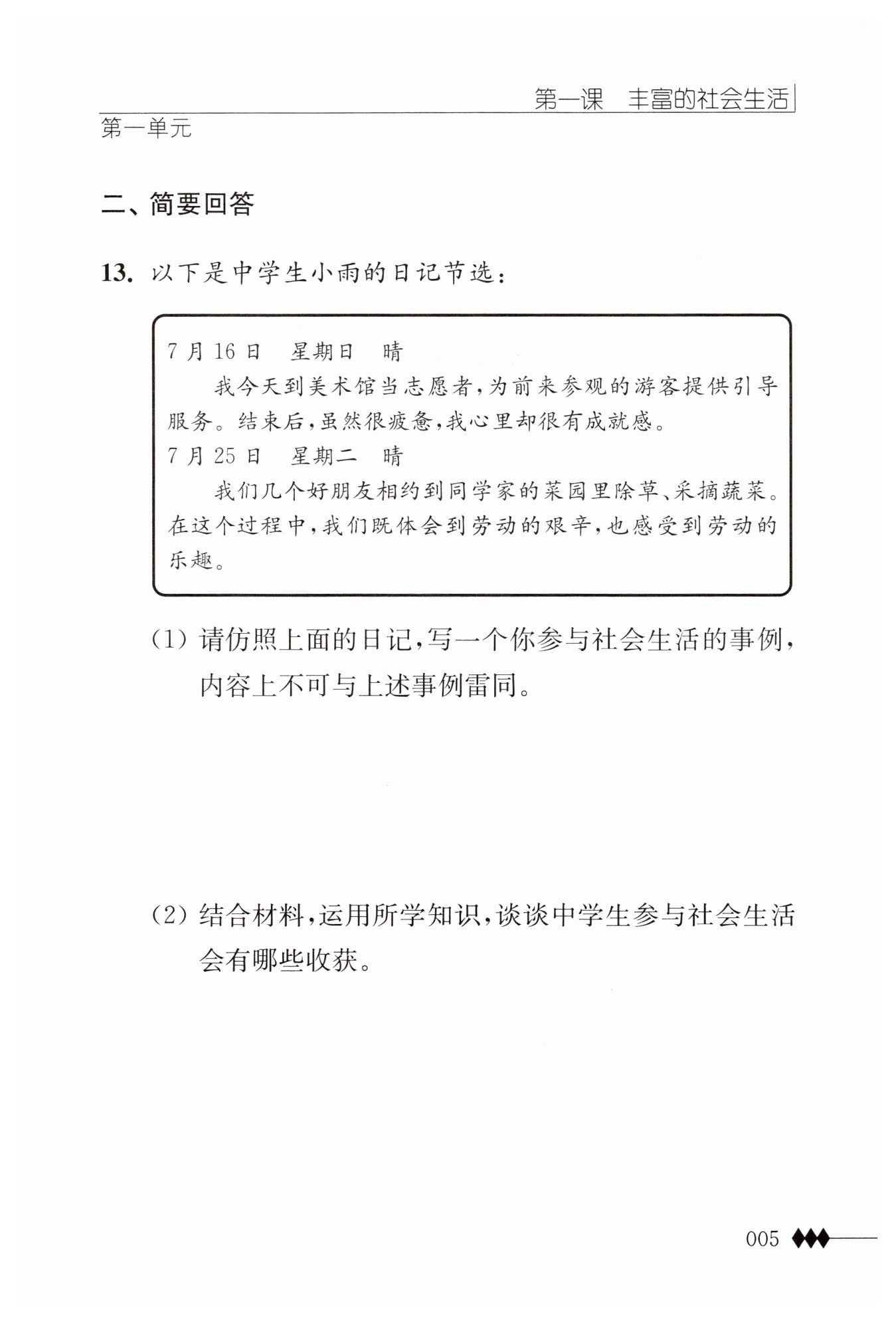 (2)①中學生參與社會生活,有利于養(yǎng)成良好的行為習慣,塑造健康的人格;