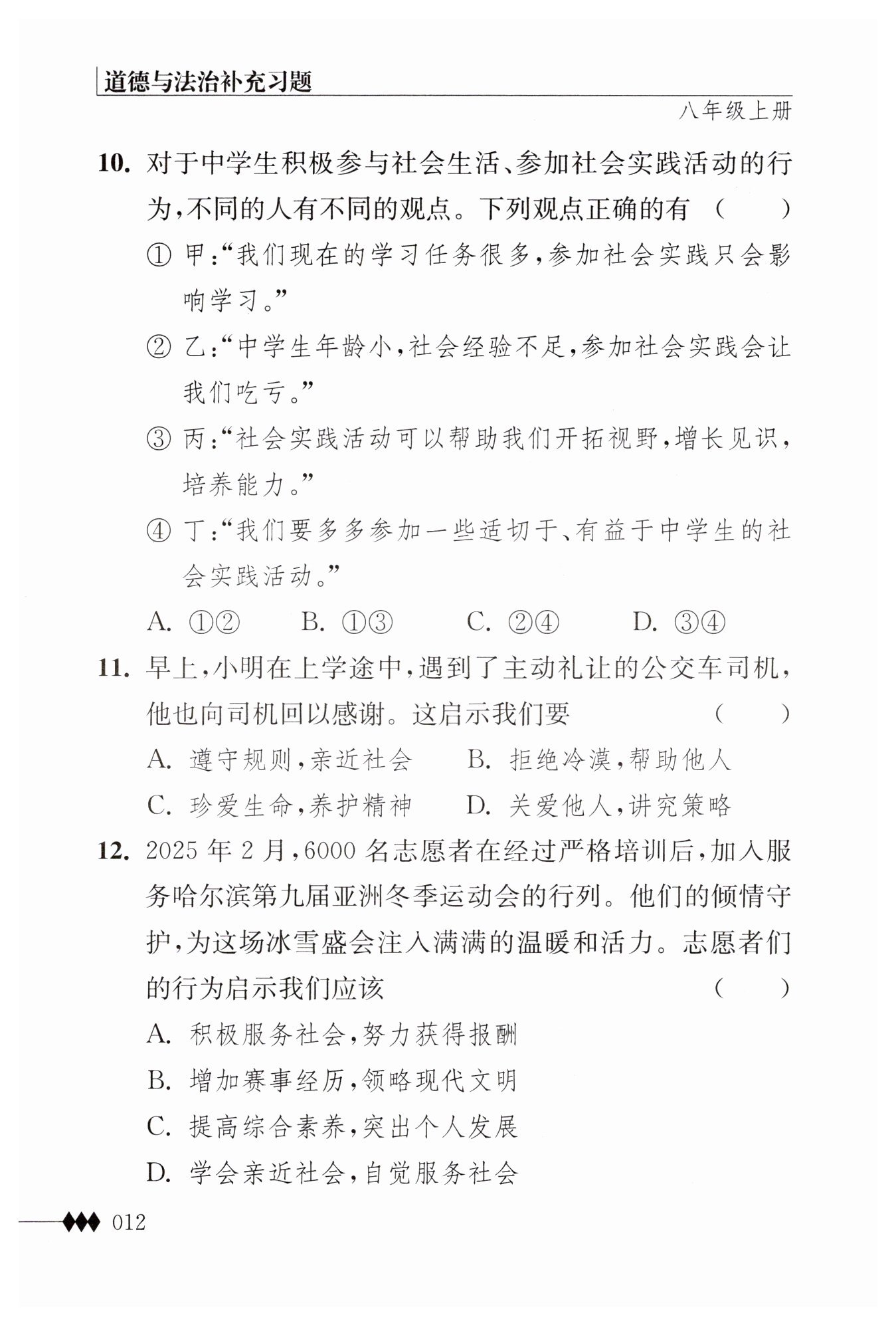 C選項(xiàng)“珍愛(ài)生命,養(yǎng)護(hù)精神”與題目?jī)?nèi)容關(guān)聯(lián)不大,小明向司機(jī)表示感謝并未直接體現(xiàn)珍愛(ài)生命或養(yǎng)護(hù)精神。