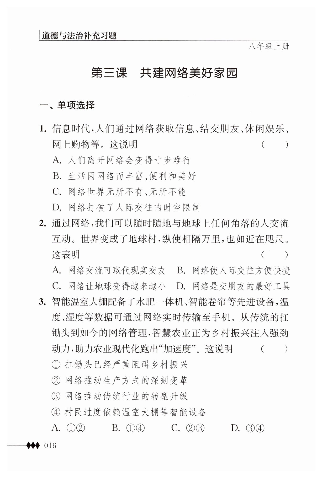 B選項,生活因網絡而豐富、便利和美好,這個選項直接對應了題干中描述的多個網絡應用場景,符合題意,故B正確。