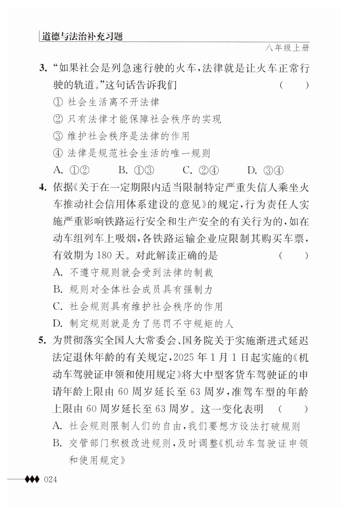選項C,社會規(guī)則確實具有維護(hù)社會秩序的作用。本題中的規(guī)定就是一個例子,它通過限制特定行為責(zé)任人購買車票來維護(hù)鐵路運行安全和生產(chǎn)安全,從而維護(hù)社會秩序。因此,C選項正確。