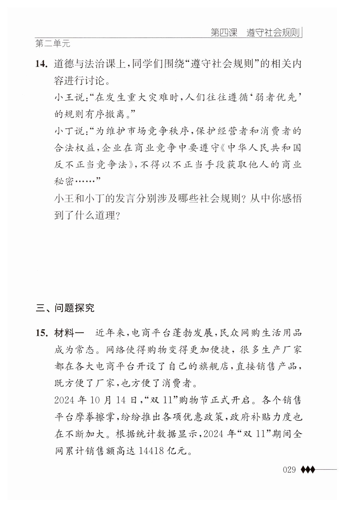 1. 小王的發(fā)言涉及道德規(guī)則;小丁的發(fā)言涉及法律規(guī)則。