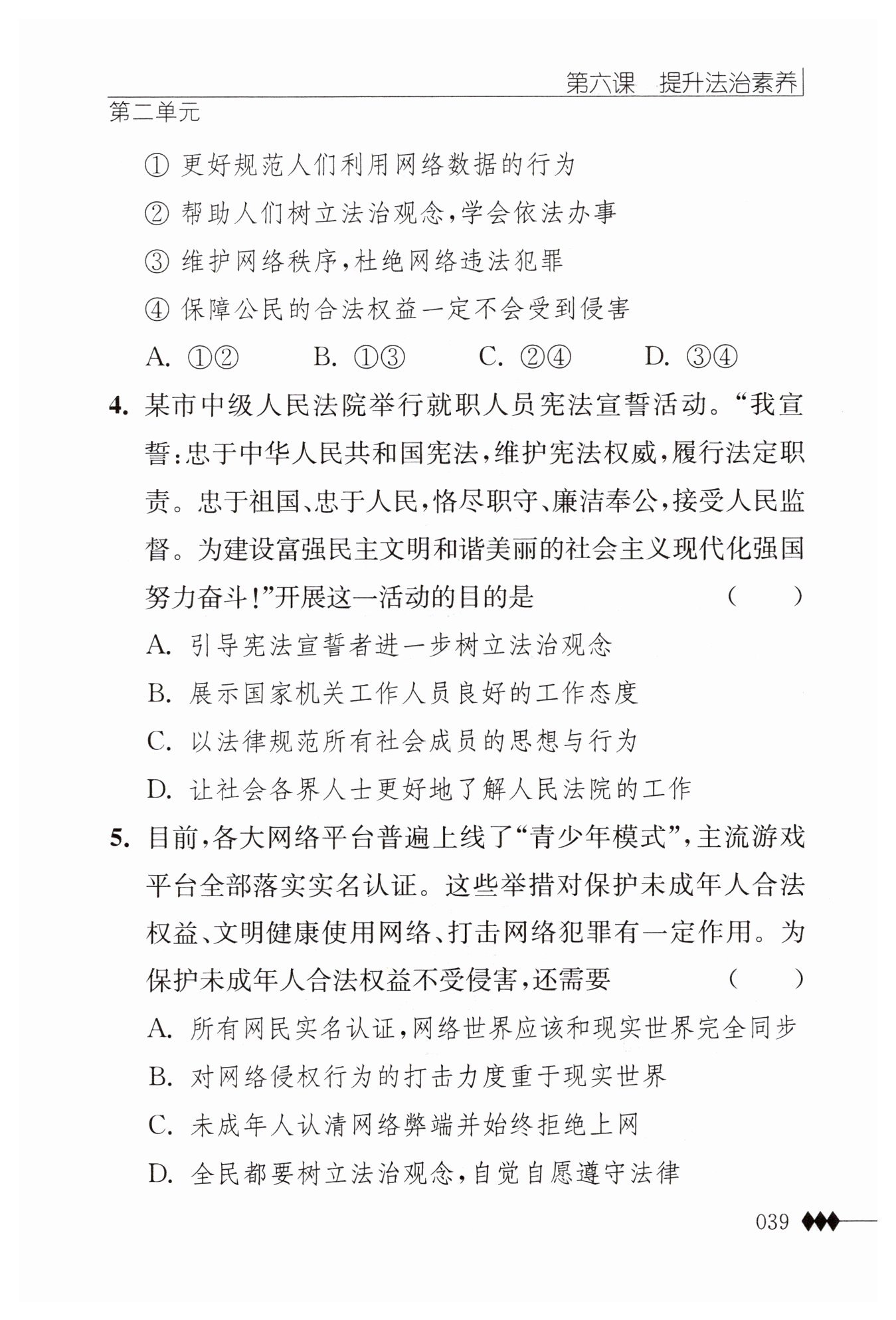 A選項指出,這一活動是為了引導憲法宣誓者進一步樹立法治觀念。這與宣誓內(nèi)容中的“忠于中華人民共和國憲法,維護憲法權(quán)威,履行法定職責”相呼應,表明活動旨在強化宣誓者對憲法的忠誠和遵守,符合提升法治素養(yǎng)的主題。