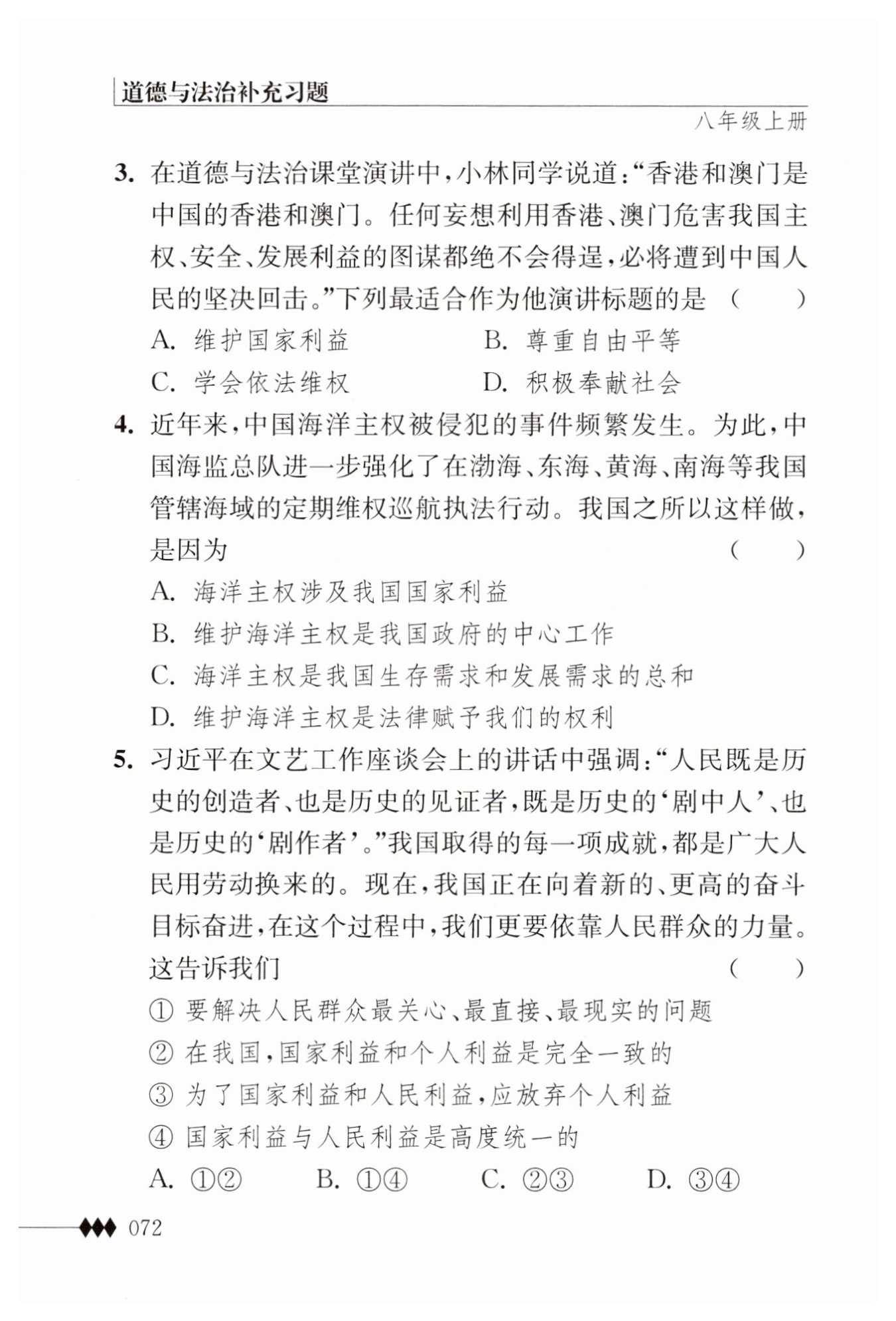 綜上所述,最適合作為小林同學(xué)演講標(biāo)題的是A選項(xiàng)“維護(hù)國(guó)家利益”。