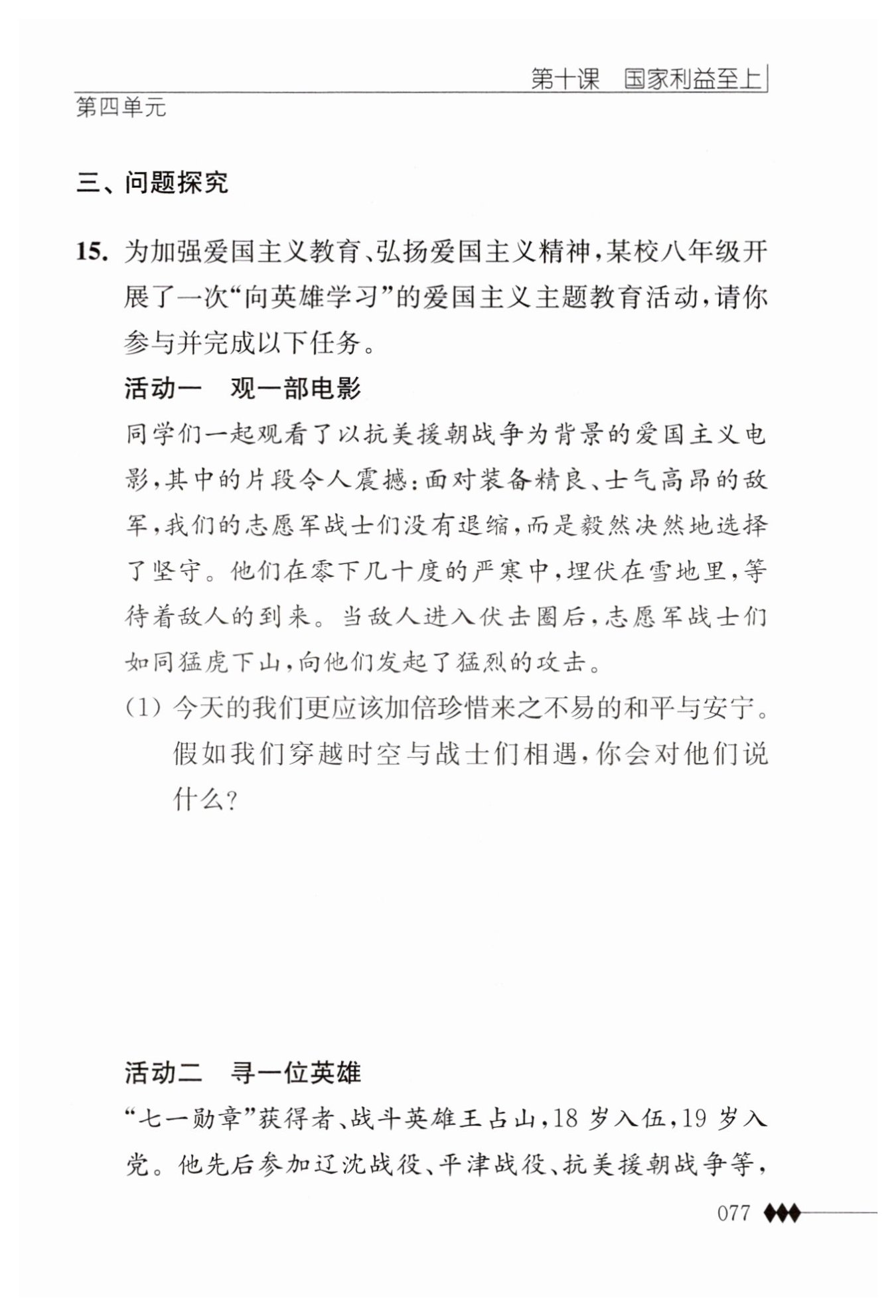 (1)志愿軍戰(zhàn)士們,感謝你們的英勇犧牲和無私奉獻(xiàn),是你們用鮮血和生命換來了我們今天的和平與幸福生活,我們會永遠(yuǎn)銘記你們,珍惜來之不易的安寧,努力學(xué)習(xí),報效祖國。