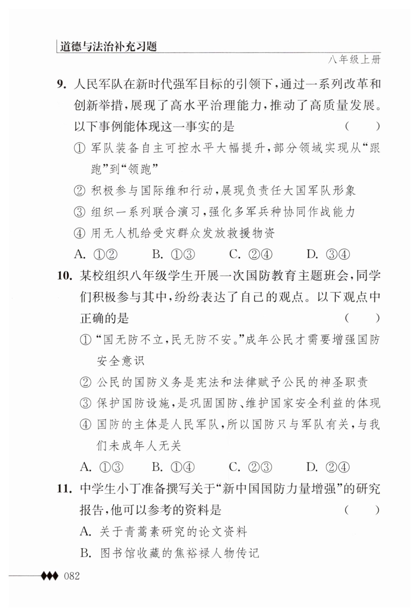 ②選項(xiàng)“積極參與國(guó)際維和行動(dòng),展現(xiàn)負(fù)責(zé)任大國(guó)軍隊(duì)形象”,雖然體現(xiàn)了軍隊(duì)的國(guó)際責(zé)任感,但并不直接反映軍隊(duì)的治理能力和發(fā)展質(zhì)量。