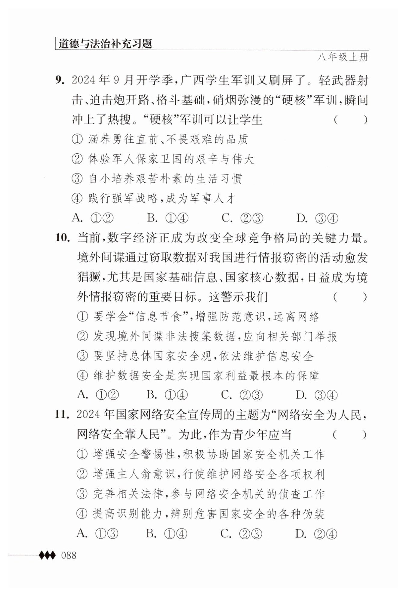 ③“自小培養(yǎng)艱苦樸素的生活習慣”:雖然軍訓能夠鍛煉學生的意志品質,但并不能直接等同于培養(yǎng)艱苦樸素的生活習慣。艱苦樸素的生活習慣更多地體現(xiàn)在日常生活中的節(jié)儉、樸素等方面,與軍訓的直接關聯(lián)不大。此選項不正確。