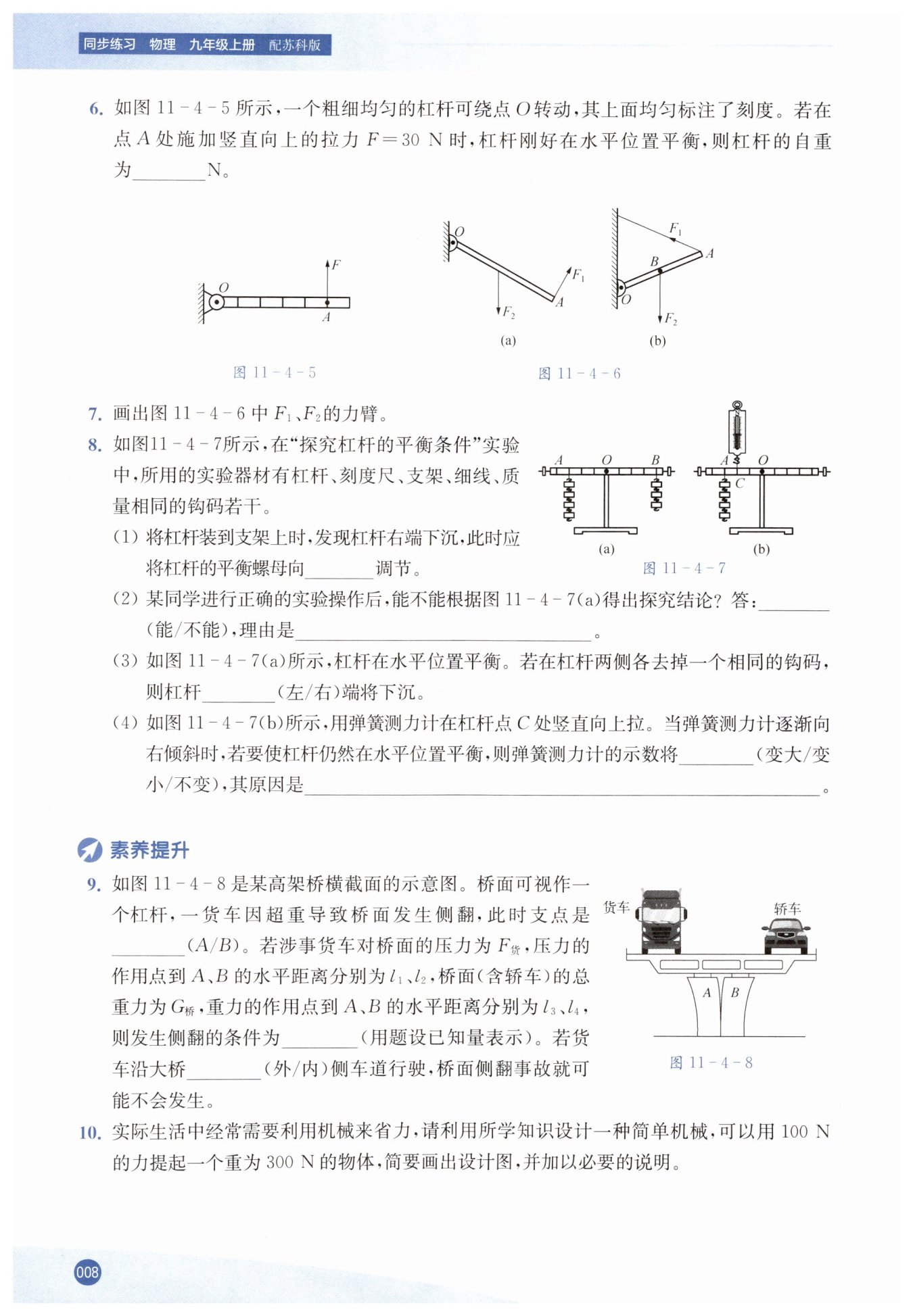 說明:根據(jù)杠桿平衡條件$F_1L_1=F_2L_2$,$F_1=\frac{F_2L_2}{L_1}=\frac{300\ N \cdot L_2}{3L_2}=100\ N$,可實(shí)現(xiàn)用100 N的力提起300 N的物體。