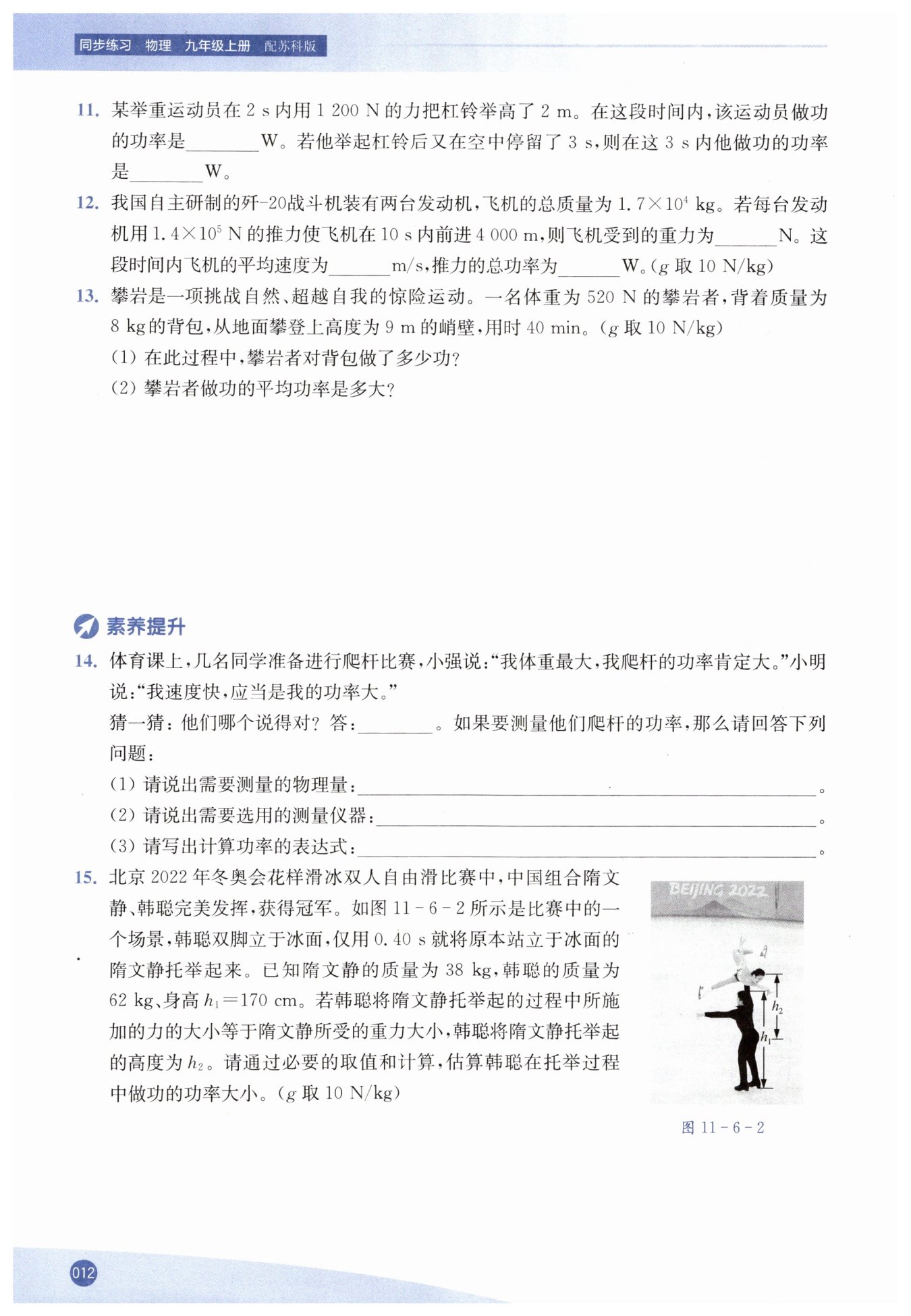 攀巖者做的總功:$W_{總}=G_{總}h=600\ N × 9\ m=5400\ J$