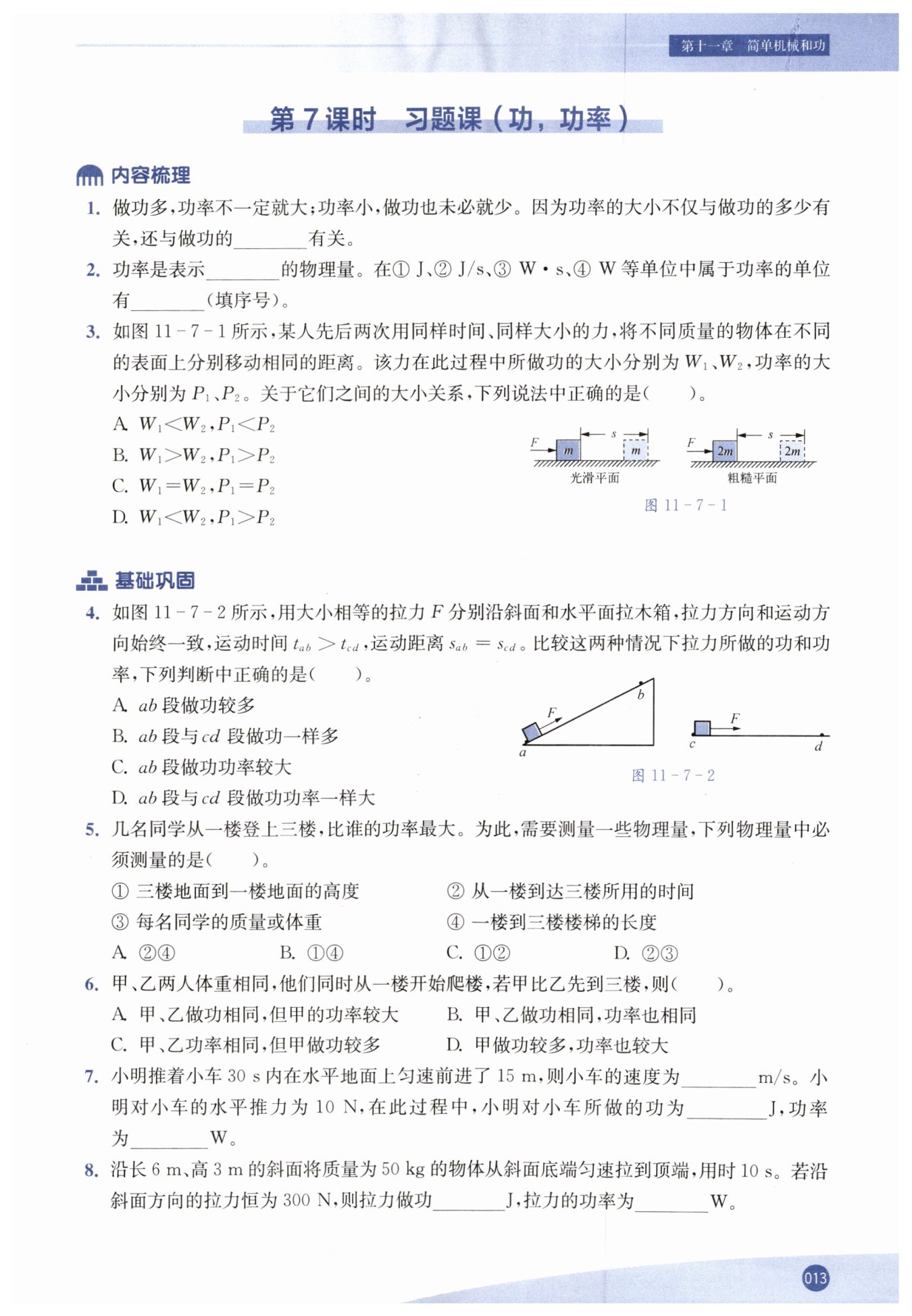 拉力做功:$W = Fs$,兩種情況拉力$F$相等,運(yùn)動(dòng)距離$s_{ab}=s_{cd}$,故$W_{ab}=W_{cd}$。