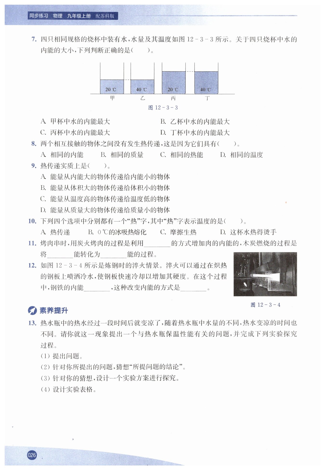 (3)分別在兩只相同的熱水瓶中裝入不同質(zhì)量、同樣溫度的水,放在相同的環(huán)境中讓它自然冷卻,并用溫度計測出各時刻水的溫度