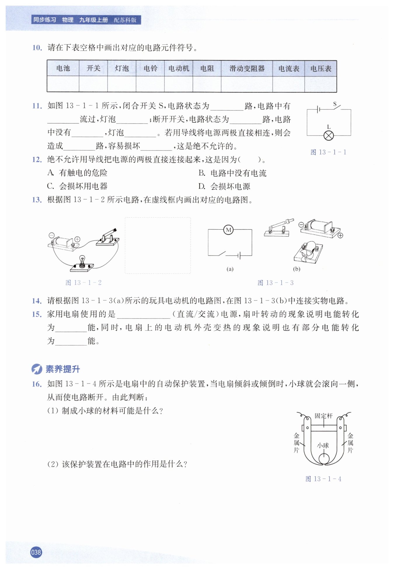 (由于題目要求根據(jù)電路圖連接實物電路,需通過畫圖完成,此處無法直接呈現(xiàn)圖形,實際作答應(yīng)在答題卡圖13-1-3(b)中按照規(guī)范連接電路,確保電源、開關(guān)、電動機等元件連接正確,導線不交叉。)