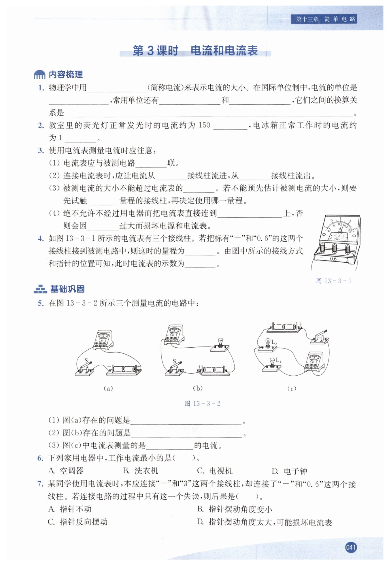 電流強度 安(A) 毫安(mA) 微安(μA) 1 A = 1 000 mA,1 A = $10^{6}$μA