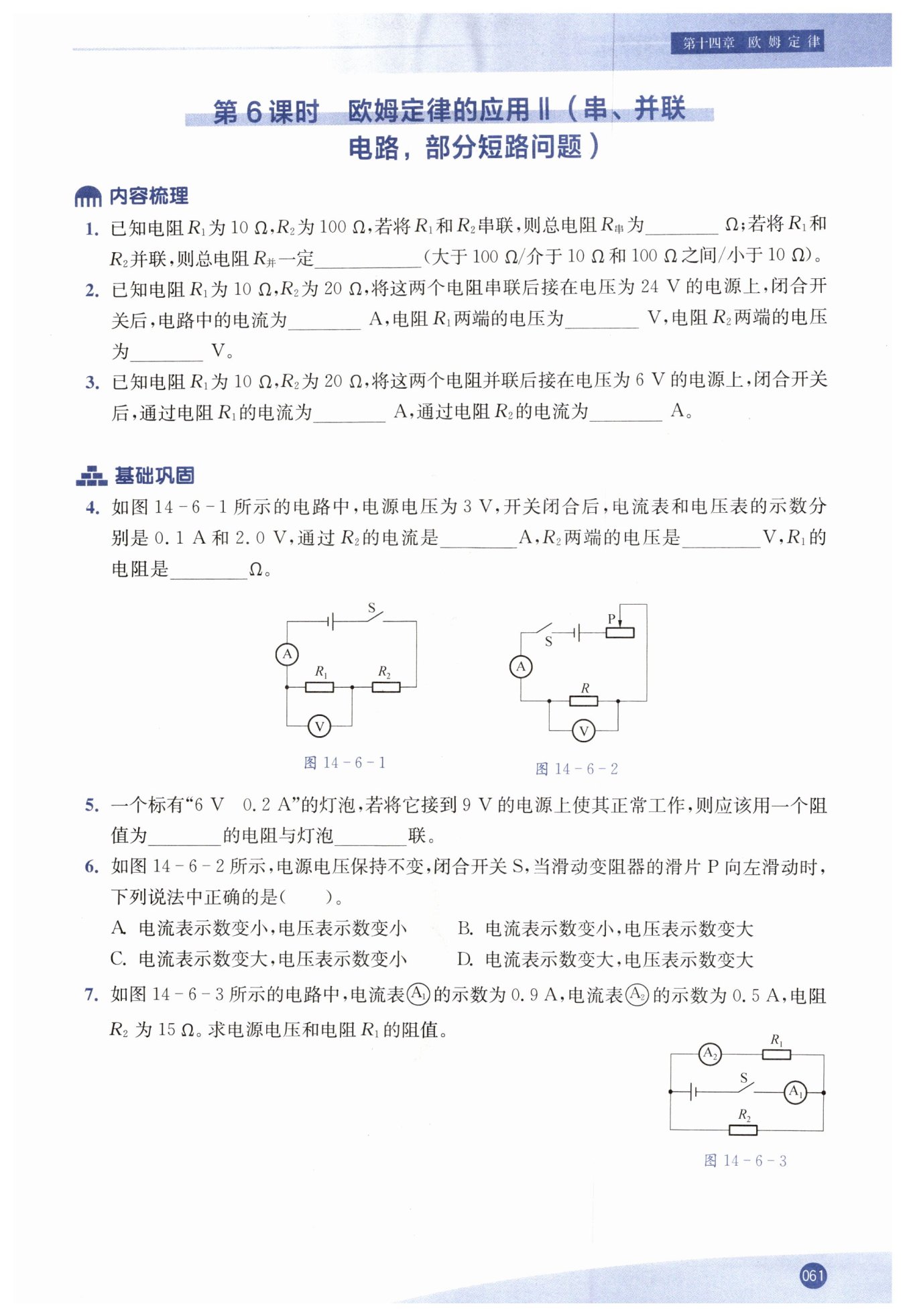 電源電壓:$U = I_2 R_2 = 0.4\,A × 15\,\Omega = 6\,V$