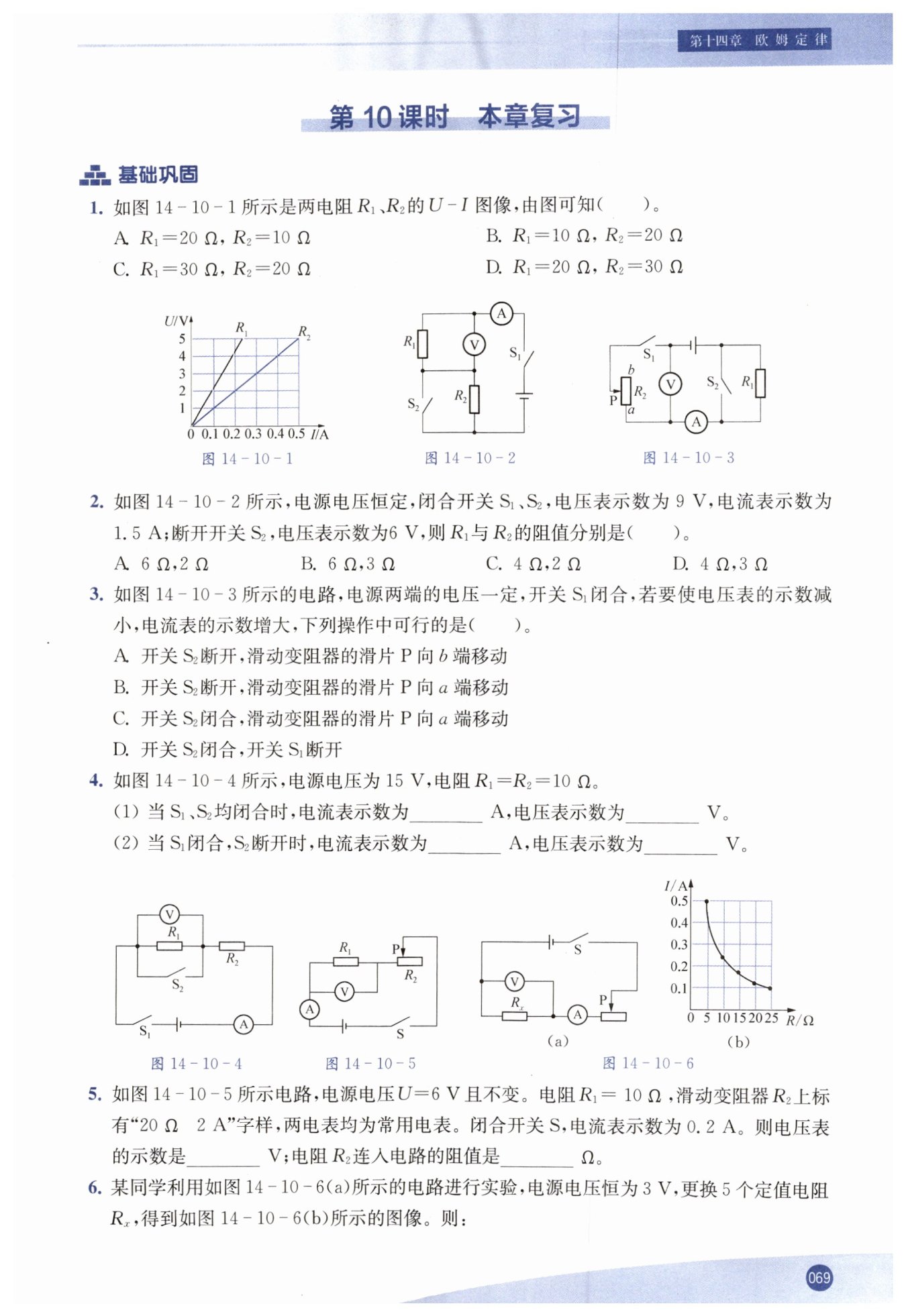 斷開開關$S_2$時,$R_1$與$R_2$串聯(lián),電壓表測$R_1$兩端電壓$U_1 = 6\ V$,則$R_2$兩端電壓$U_2=U - U_1=9\ V-6\ V=3\ V$。