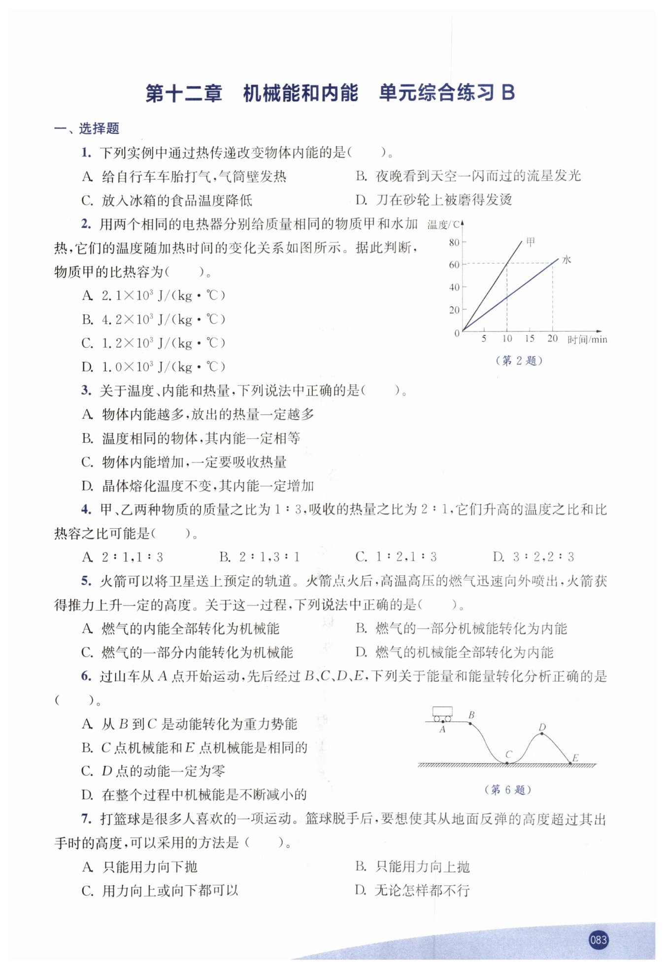 根據(jù)$Q=cm\Delta t$,$m$、$\Delta t$相同,$c=\frac{Q}{m\Delta t}$,則$c_{甲}=\frac{Q_{甲}}{Q_{水}}c_{水}=\frac{1}{2}×4.2×10^{3}\ J/(kg·℃)=2.1×10^{3}\ J/(kg·℃)$。