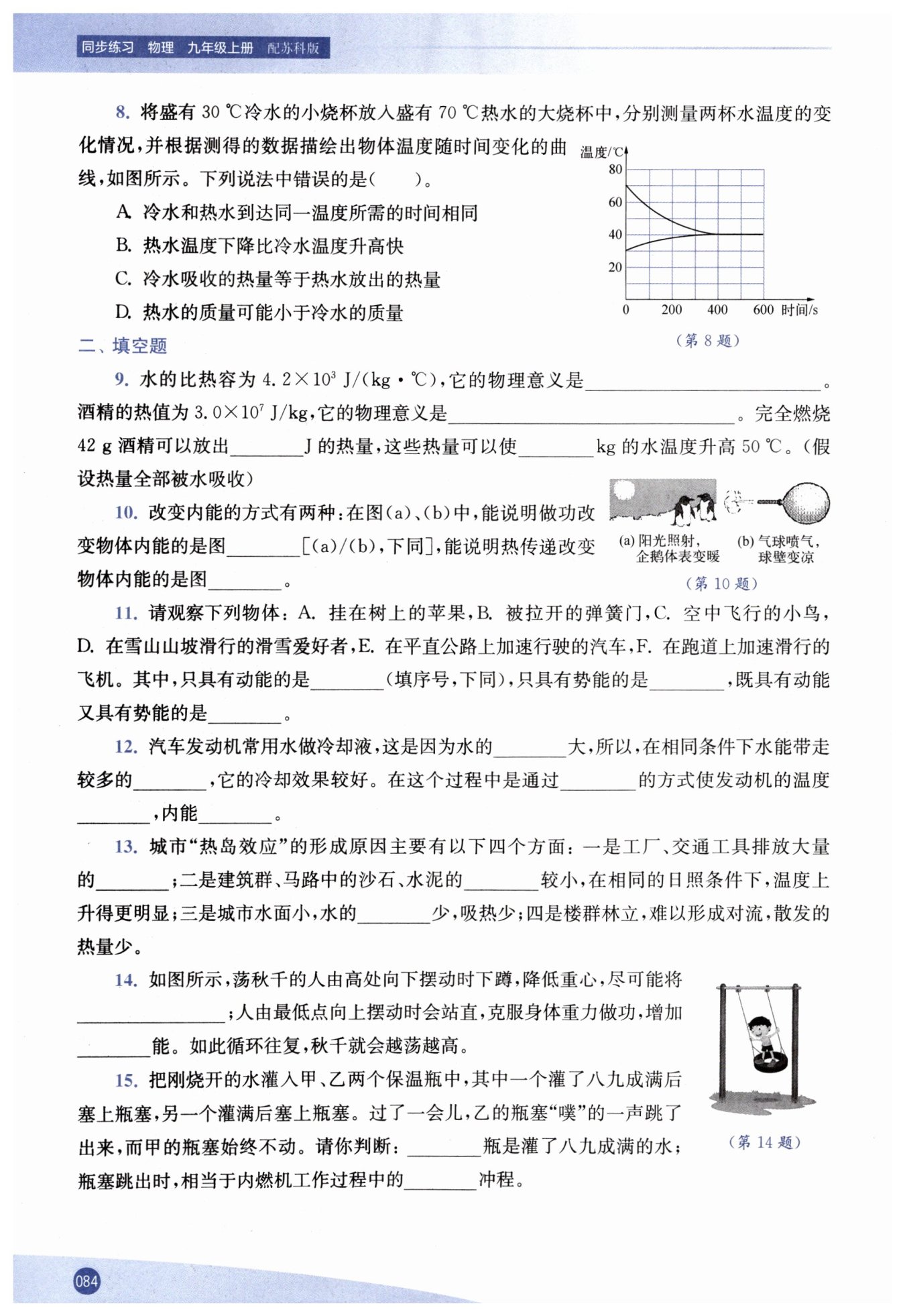 質(zhì)量為1 kg的水溫度升高(或降低)1°C時(shí)吸收(或放出)的熱量為4.2×103J