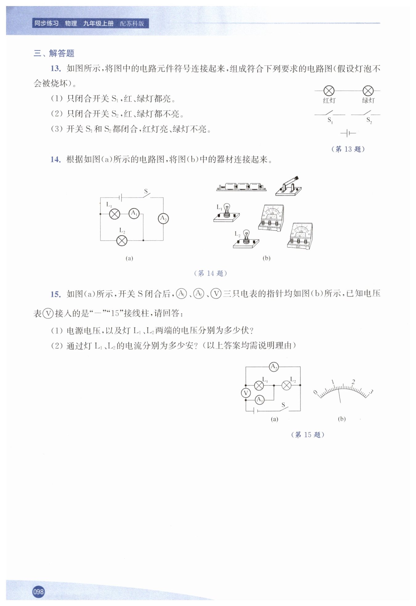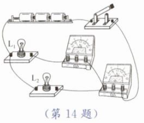 (1)由電路圖可知,兩燈泡并聯(lián),電壓表測電源的電壓,電流表$A_1$測干路電流,電流表$A_2$測$L_1$支路的電流。