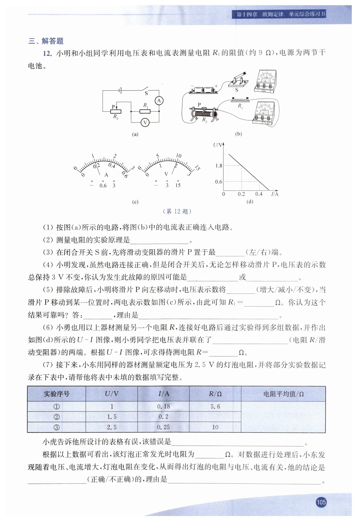 (7)7.5 不能有電阻平均值這一欄 10 不正確 燈泡的電阻與電壓、電流無關(guān),電阻變化是因為受到溫度的影響