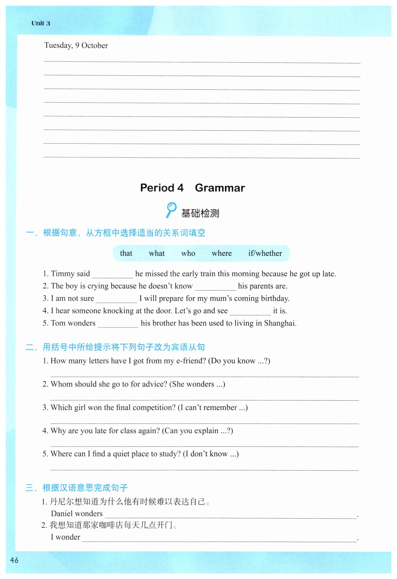 sleepy in class. But nobody understands me, even Mum and Dad. They are too strict with me.