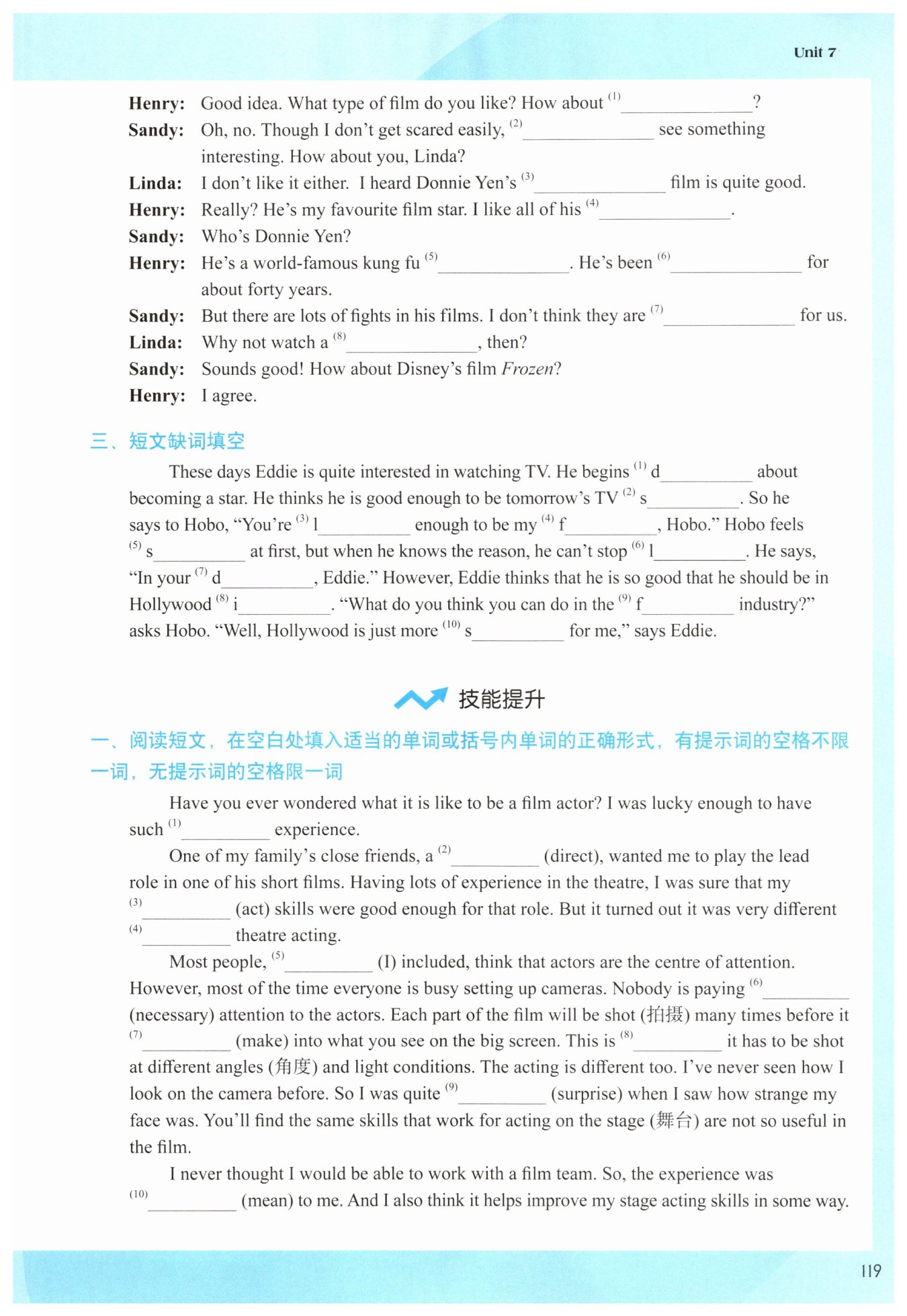 3. acting skills表示“表演技巧”,這里需要用act的動(dòng)名詞形式作定語(yǔ)修飾skills。