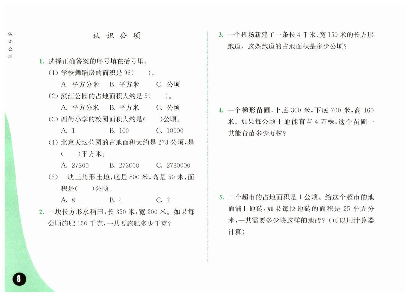答:這條跑道的占地面積是60公頃。