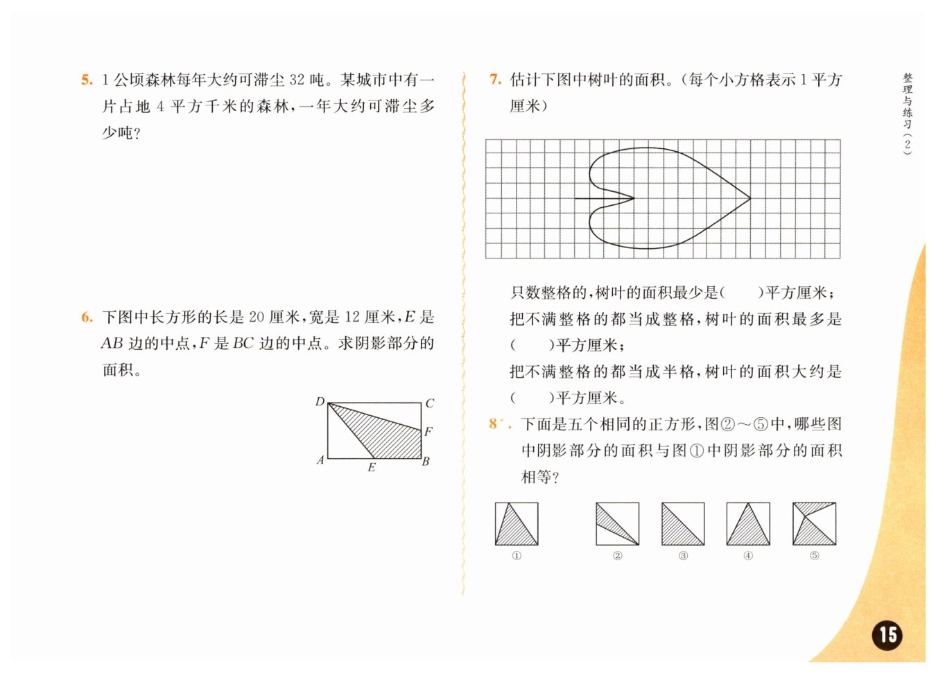 圖③④⑤中陰影部分的面積與圖①中陰影部分的面積相等。