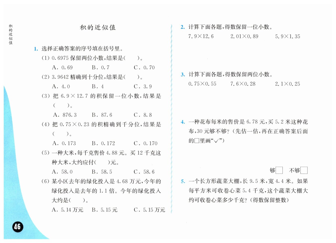 將6.78近似看作7,5.2近似看作5,7×5=35(元),35>30,不夠。