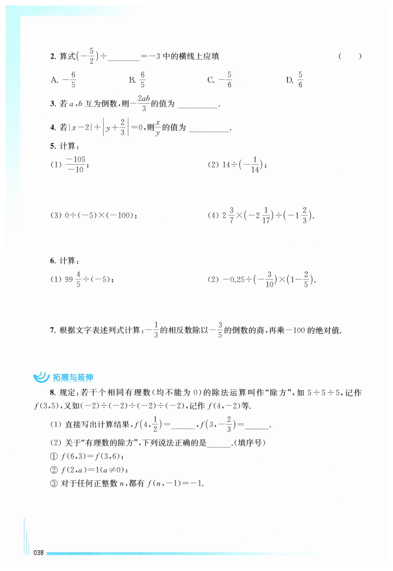 解:設(shè)橫線上的數(shù)為$x$,則$(-\frac{5}{2})÷x=-3$。