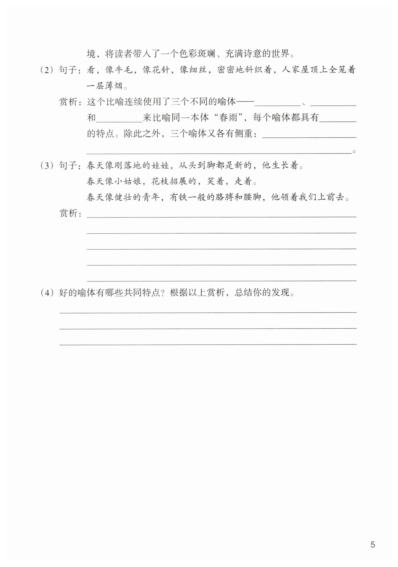 命力,突出春天的生機。三個喻體又各有側重:“剛落地的娃娃”