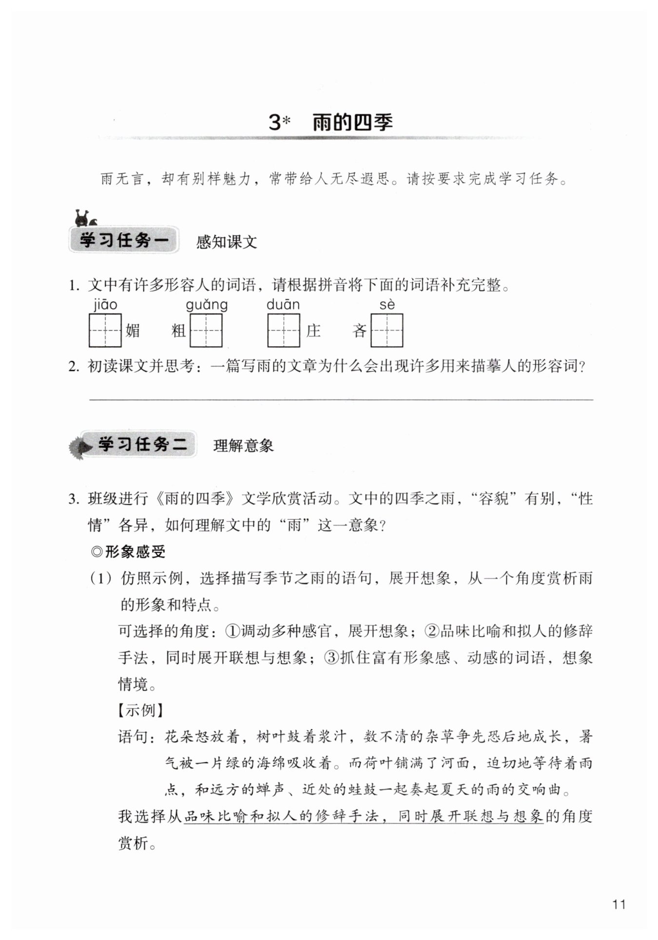運(yùn)用擬人的修辭手法,賦予雨人的情態(tài),使雨的形象更生動(dòng)形象,更富有人情味,表達(dá)了作者對(duì)雨的喜愛之情。
