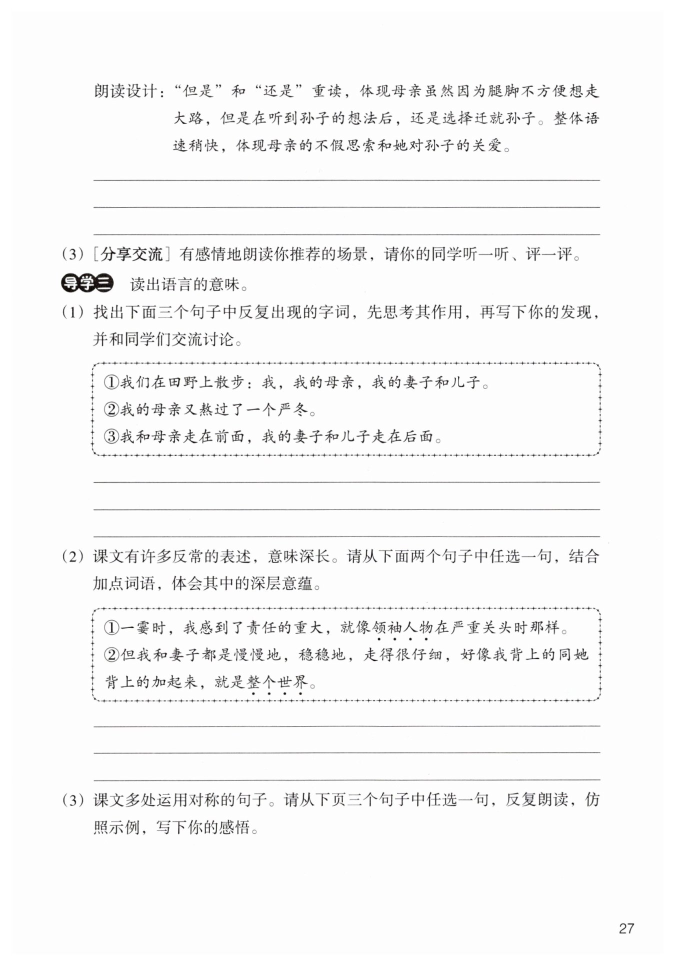 任的承擔者,體現(xiàn)了擔當意識;“母親”的反復突出了母親的重要性及“我