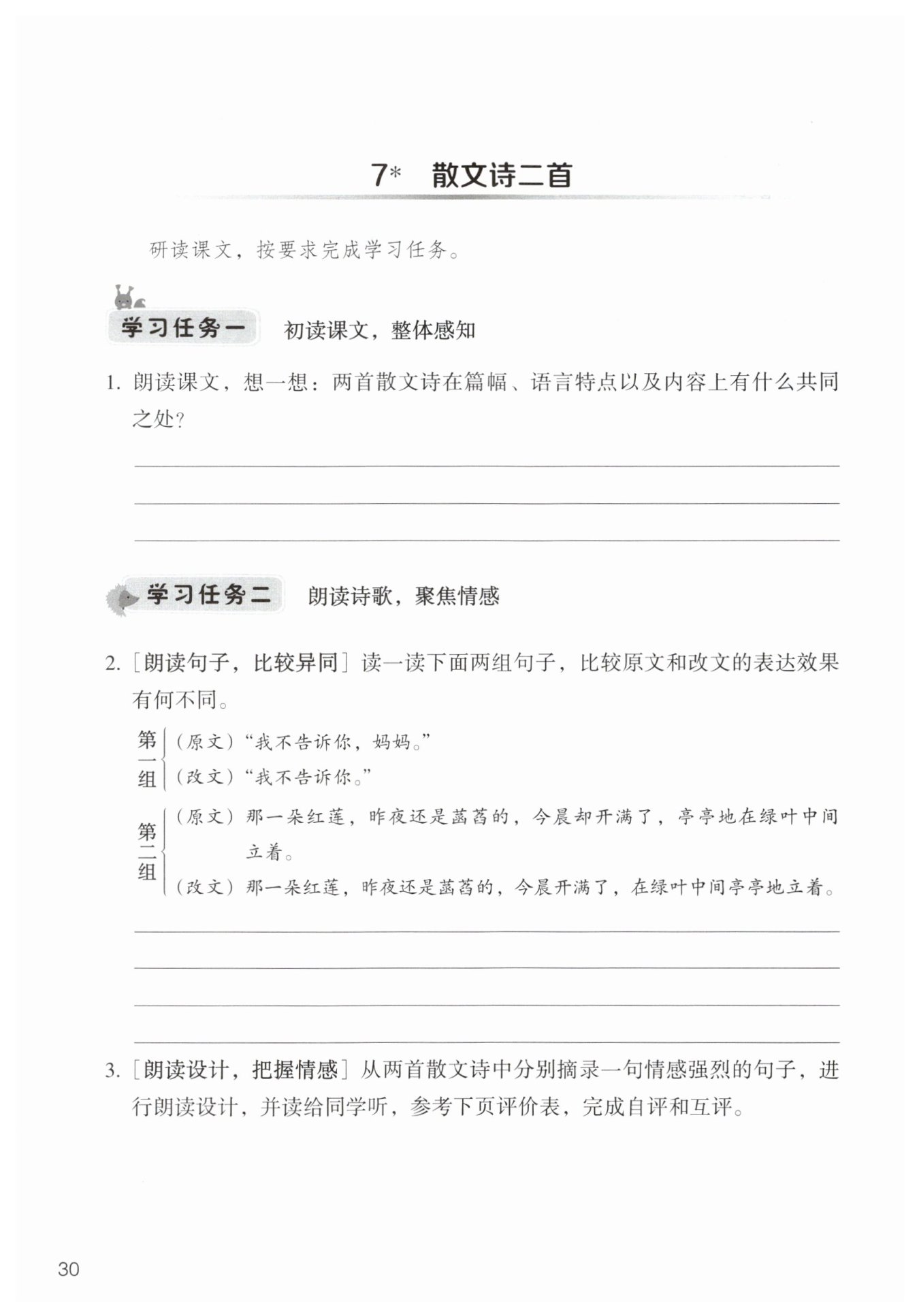 時應(yīng)讀出孩子對母親的依戀之情。第二組,原文的“卻”字寫出了作者見紅