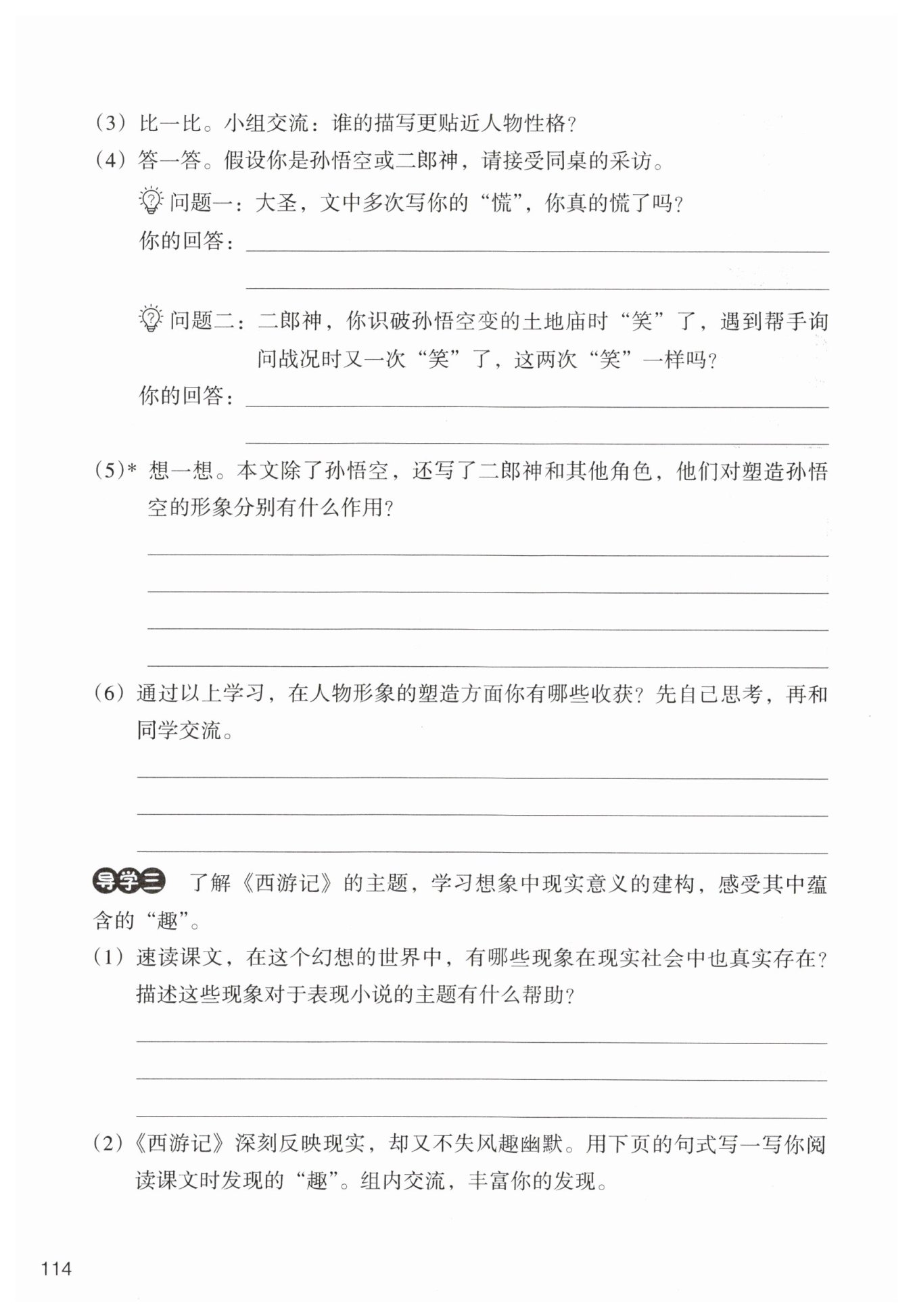 神:用梅山六兄弟對(duì)捉拿孫悟空束手無(wú)策的愚笨形象烘托出孫悟空變化速度之快、變化之逼真,也烘托出二郎神的機(jī)智;寫(xiě)鬼判時(shí)常在二郎神身邊侍候卻不能分辨真假,烘托出孫悟空變化手段的出神入化;寫(xiě)四大天王提防二人變法,烘托出二郎神與孫悟空的本領(lǐng)高強(qiáng)。