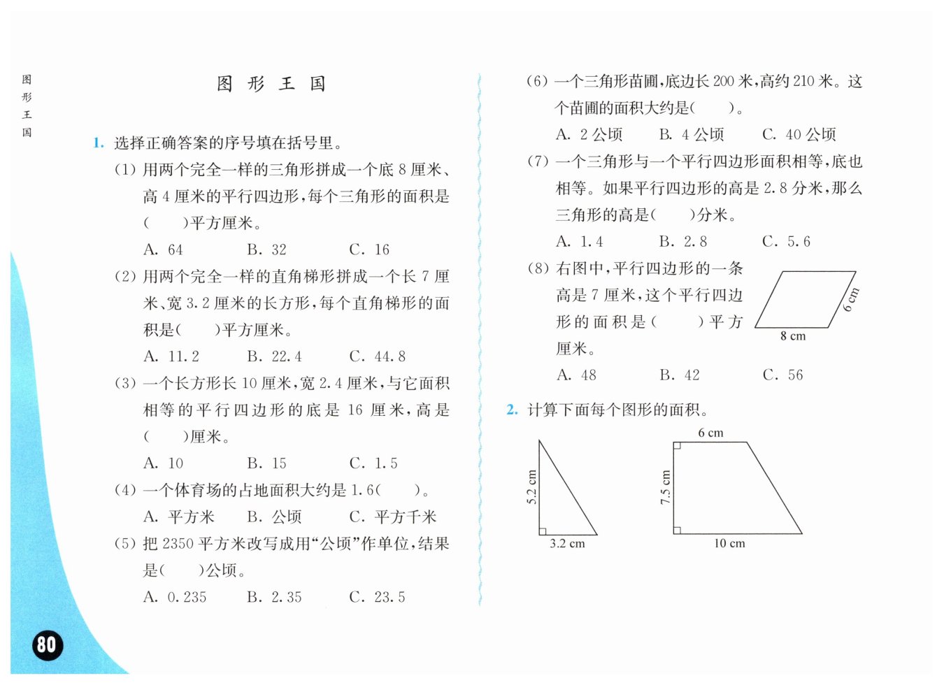 3.2×5.2÷2=8.32(cm2)