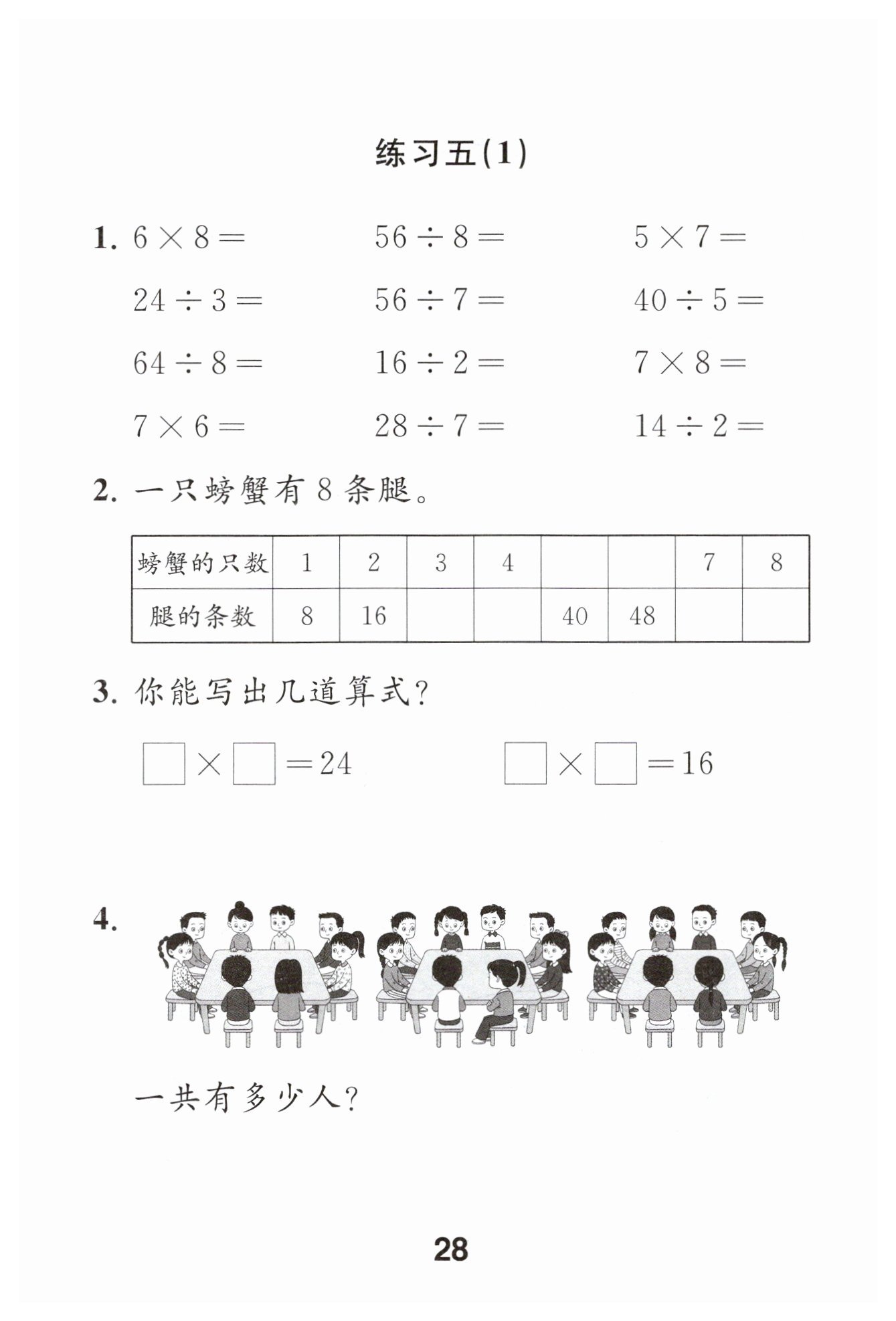 解:觀察圖片可知每張桌子旁有8人,一共有3張桌子。