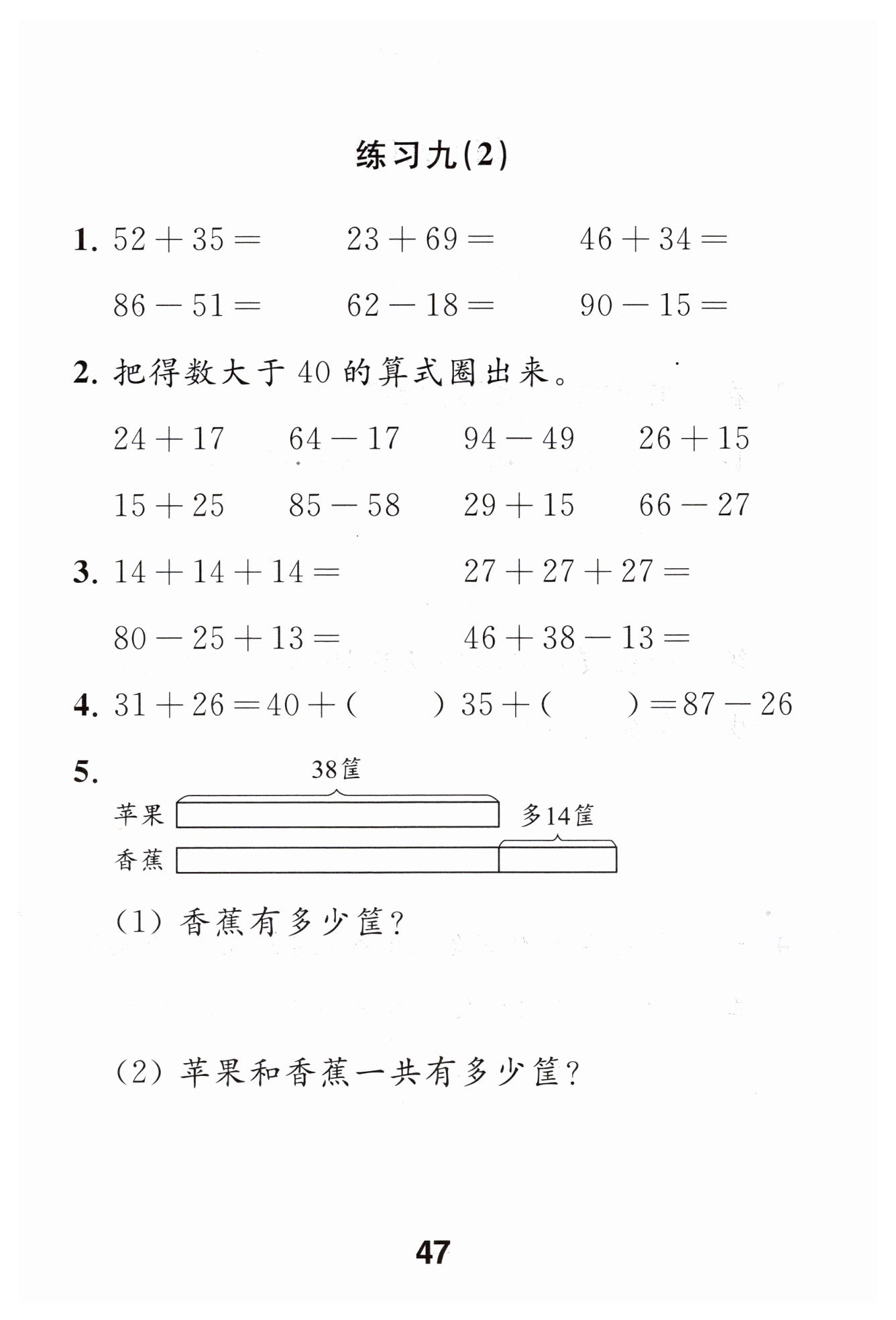 解析:本題考查的是100以內(nèi)的加減法以及大小的比較。