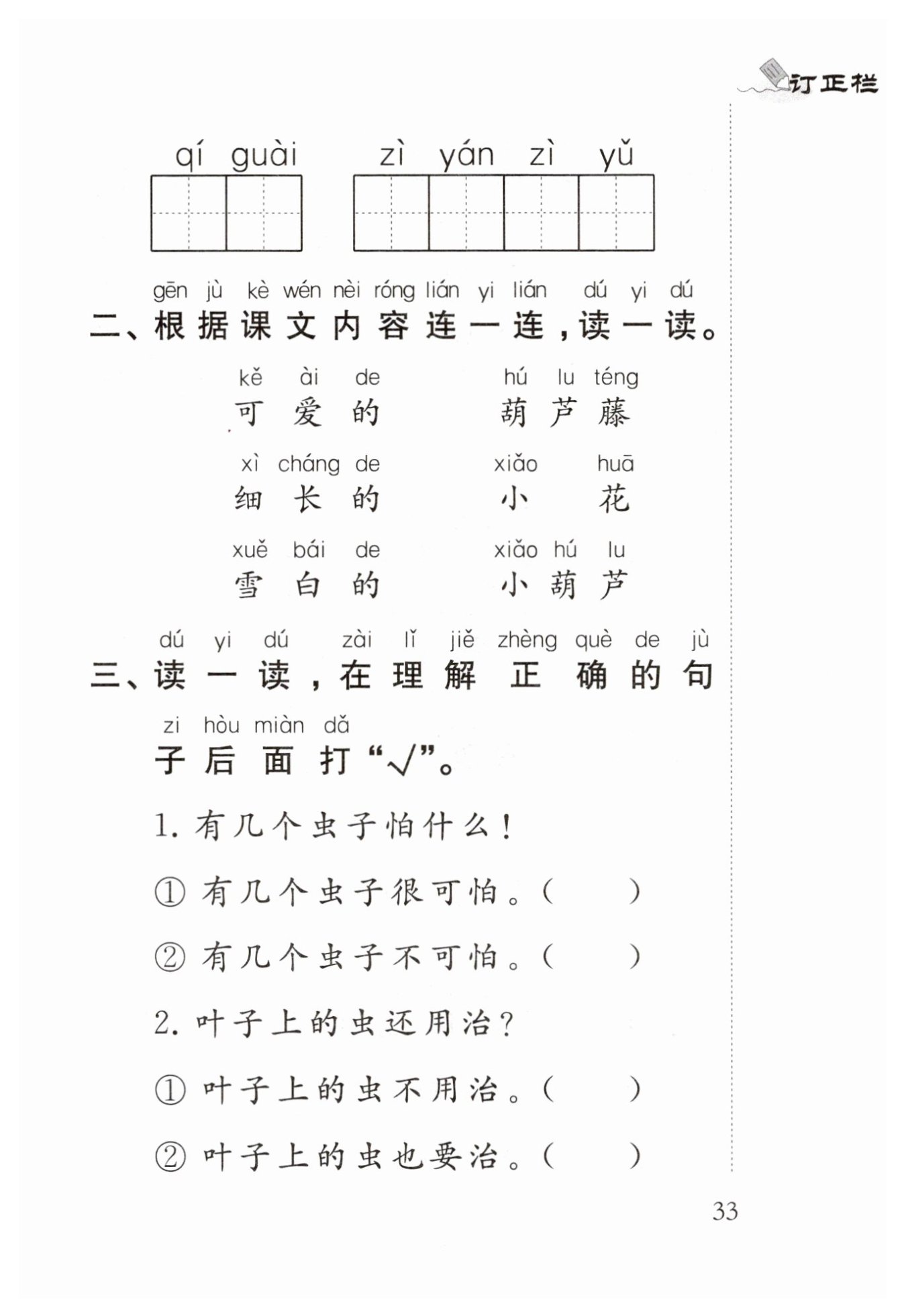 【答案】:1. ② 有幾個(gè)蟲子不可怕。( √ )