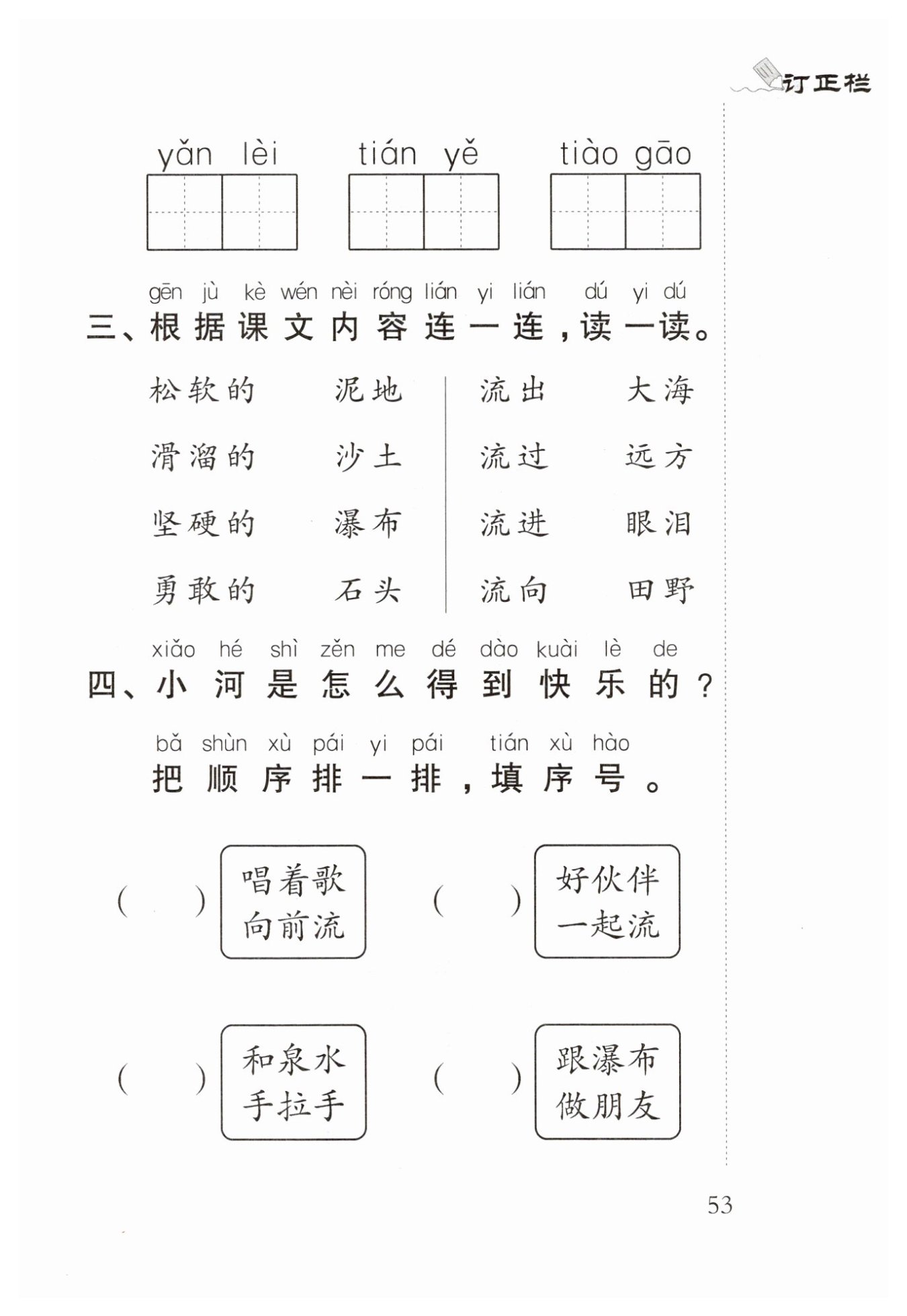 【解析】:本題考查的是對課文內(nèi)容的理解和記憶,以及詞語搭配的能力。根據(jù)課文內(nèi)容,我們需要將形容詞與名詞正確搭配,并將動(dòng)詞與相應(yīng)的賓語搭配起來。這要求我們對課文中的描述有準(zhǔn)確的理解,并能準(zhǔn)確記憶課文中的詞語搭配。