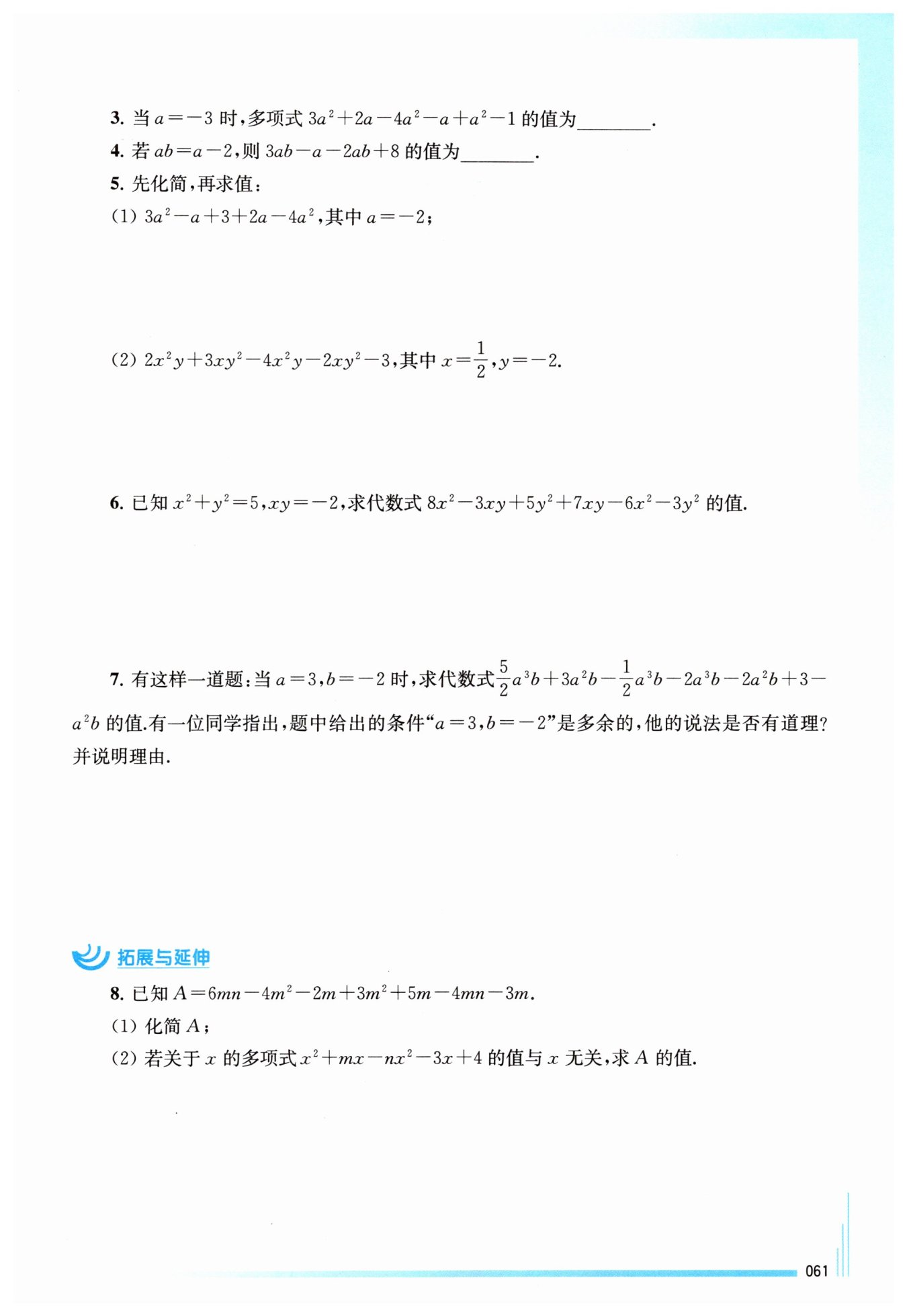 ?$ $?因為多項式的值與?$ x $?無關(guān),所以?$ x $?的各項系數(shù)為?$ 0,$?即: