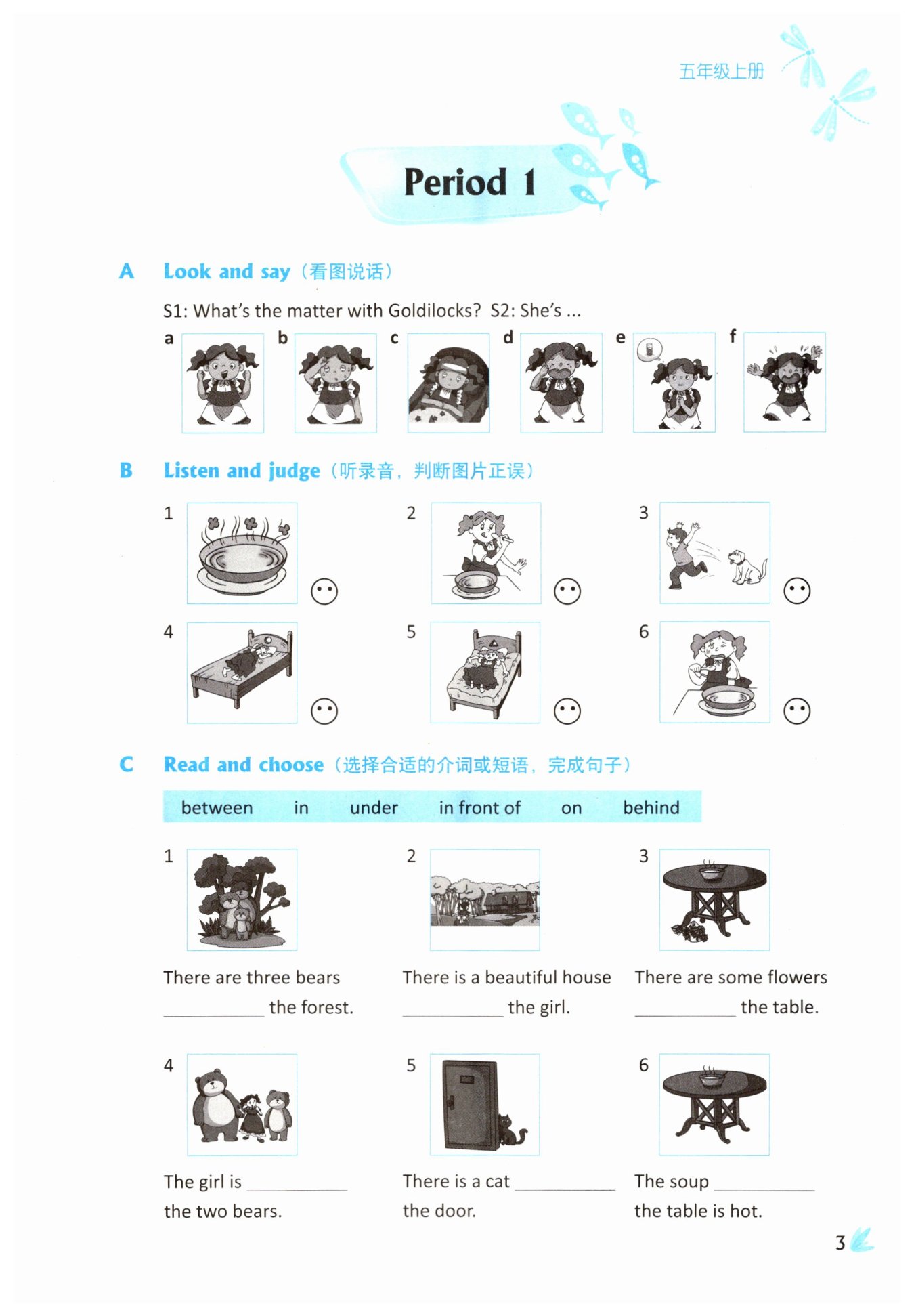 1 in 2 in front of 3 under 4 between 5 behind 6 on