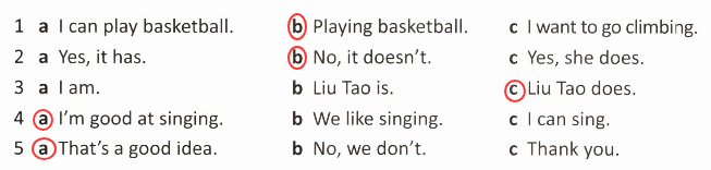 1 b 2 b 3 c 4 a 5 a